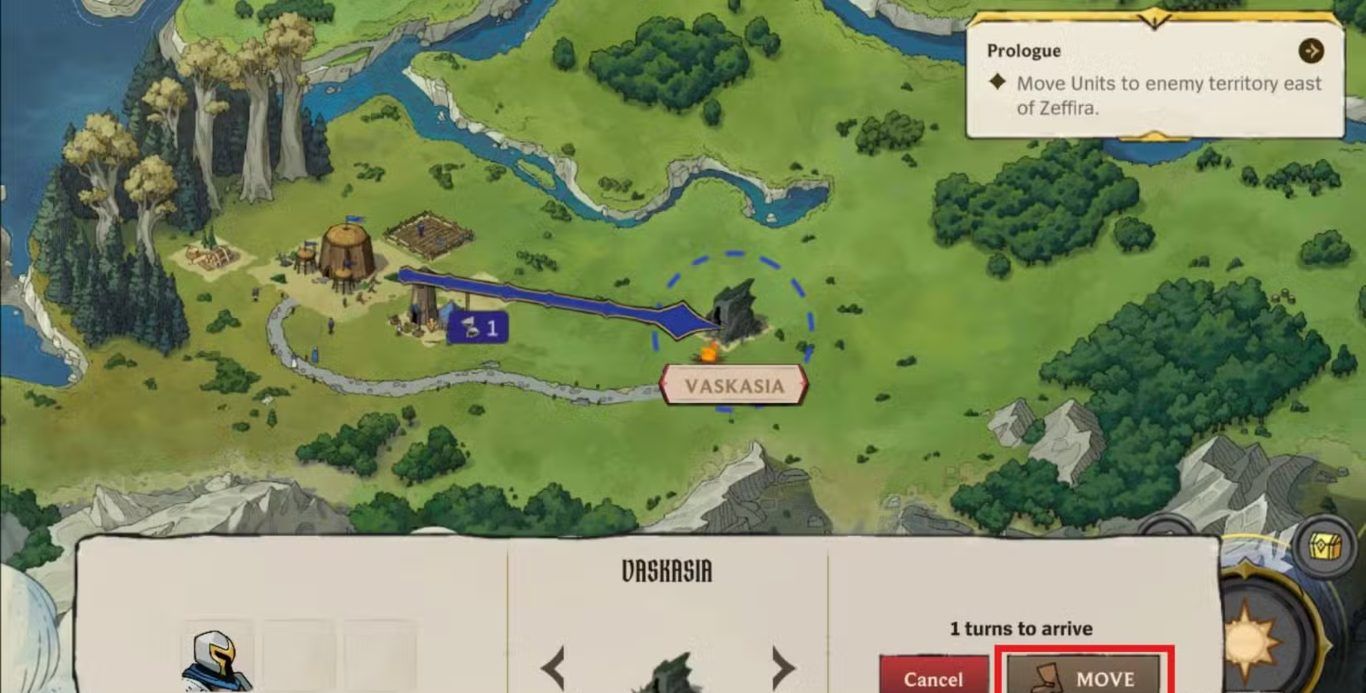 لبدء المعركة يجب على اللاعب النقر على الإقليم المعادي المعروف باسم Vaskasia حيث تظهر واجهة توضح الوضع الميداني داخل المنطقة بشكل كامل.