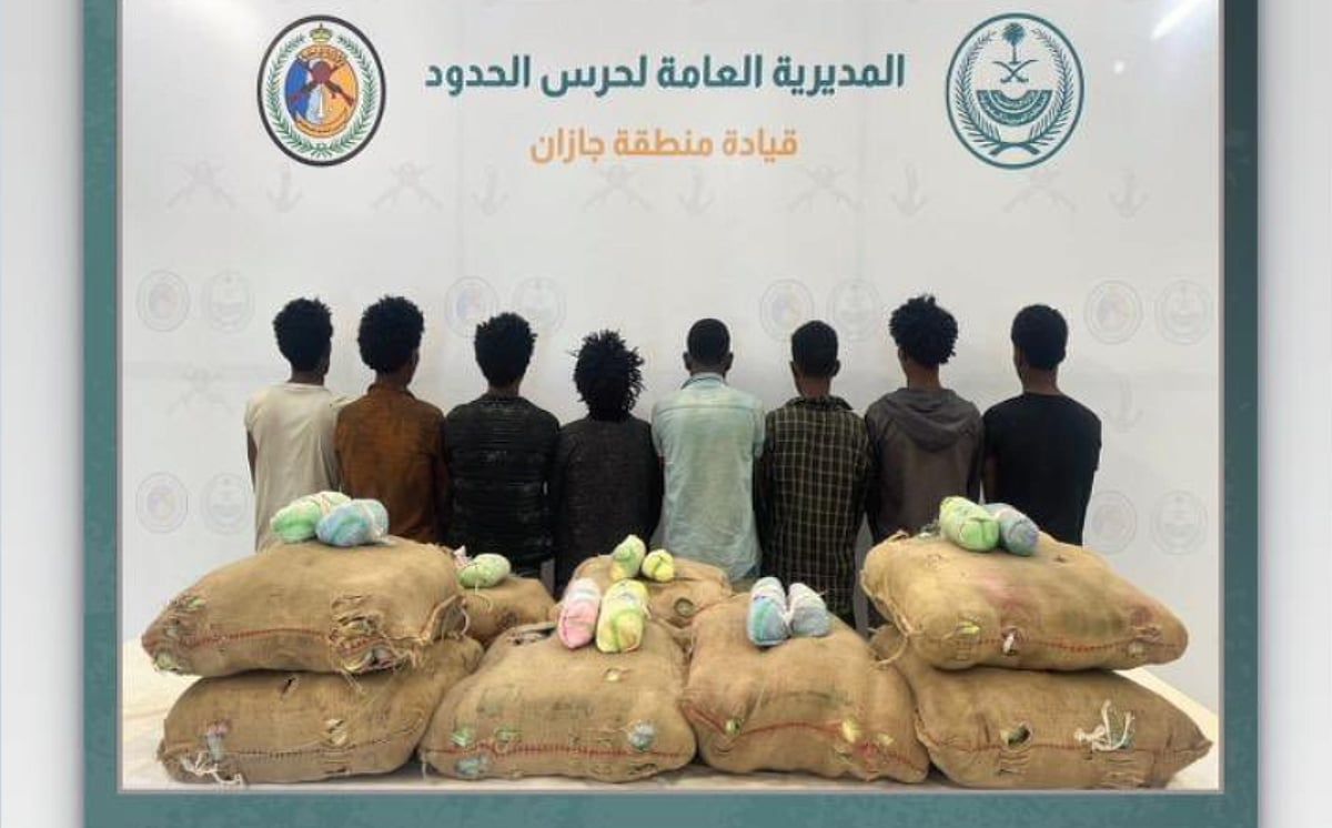 ألقت الدوريات البرية لحرس الحدود في قطاع الدائر بمنطقة جازان القبض على (8) مخالفين لنظام أمن الحدود من الجنسية الإثيوبية، لتهريبهم (144) كيلوجرامًا من نبات القات المخدر.