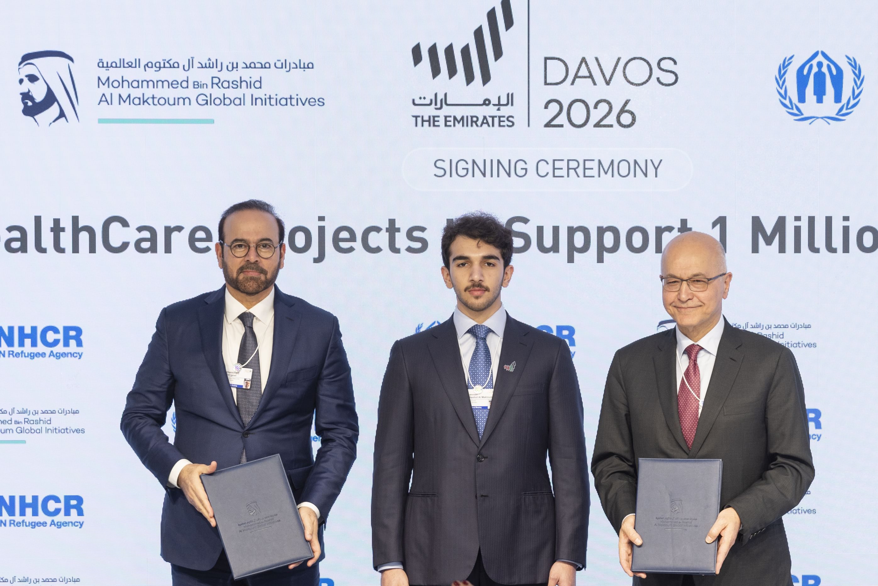 وفي اجتماع جرى في جناح دولة الإمارات في الدورة الـ56 لاجتماعات المنتدى الاقتصادي العالمي لعام 2026، بحث سمو الشيخ محمد بن راشد بن محمد بن راشد آل مكتوم عضو مجلس أمناء مؤسسة "مبادرات محمد بن راشد آل مكتوم العالمية"، بحضور معالي محمد عبدالله القرقاوي وزير شؤون مجلس الوزراء الأمين العام لمؤسسة "مبادرات محمد بن راشد آل مكتوم العالمية"،، وسعادة سعيد العطر المدير التنفيذي للمؤسسة، مع الدكتور برهم صالح المفوض السامي للأمم المتحدة لشؤون اللاجئين، سبل تعزيز التعاون بين مؤسسة المبادرات ومفوضية اللاجئين، كما استعرض الجانبان، كيفية تنسيق الجهود لتحقيق رؤاهما المشتركة، والبناء على النجاحات الكبيرة التي حققها الطرفان منذ بدء شراكتهما في العام 2021.