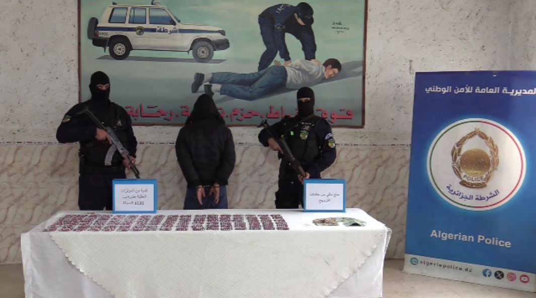 تمكنت الفرقة المتنقلة للشرطة القضائية بأمن دائرة برحال (ولاية عنابة) من الإطاحة بمروج مؤثرات عقلية. مع حجز أزيد من 1500 قرص مهلوس ومبلغ مالي من عائدات الترويج.