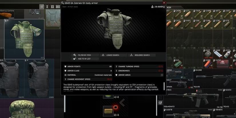 يُعدّ درع 6B43 Zabralo-Sh الخيار الأكثر أمانًا للاعبين الذين يفضلون التقدم البطيء والحذر داخل الغارات. يستخدم اللاعبون هذا الدرع بهدف الحصول على تغطية كاملة شبيهة بالدبابة وغالبًا ما يقترن بخوذة Altyn أو Maska.