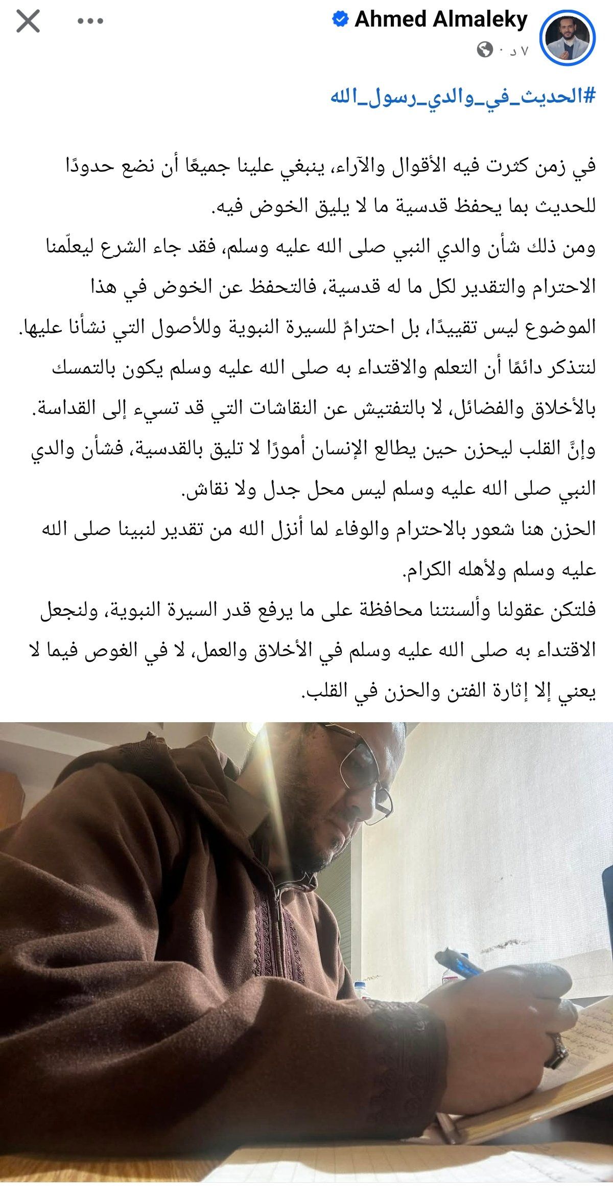 الحزن هنا شعور بالاحترام والوفاء لما أنزل الله من تقدير لنبينا صلى الله عليه وسلم ولأهله الكرام، فلتكن عقولنا وألسنتنا محافظة على ما يرفع قدر السيرة النبوية، ولنجعل الاقتداء به صلى الله عليه وسلم في الأخلاق والعمل، لا في الغوص فيما لا يعني إلا إثارة الفتن والحزن في القلب.