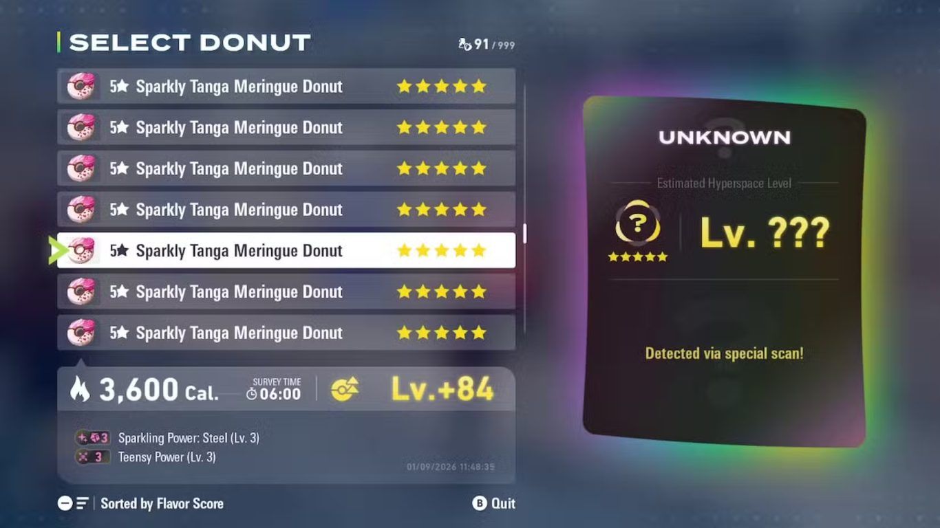تعد أفضل وصفة لصناعة Donut مخصص لصيد النسخ اللامعة هي استخدام 8 Hyper Tanga Berries حيث تمنح هذه المكونات Donut بقيمة 760 Sweet Flavor وهو المستوى المطلوب لتفعيل Sparkling Power Level 3 مما يجعل هذا النوع من Donut الخيار الأكثر كفاءة وموثوقية خلال عمليات shiny hunting المتقدمة.