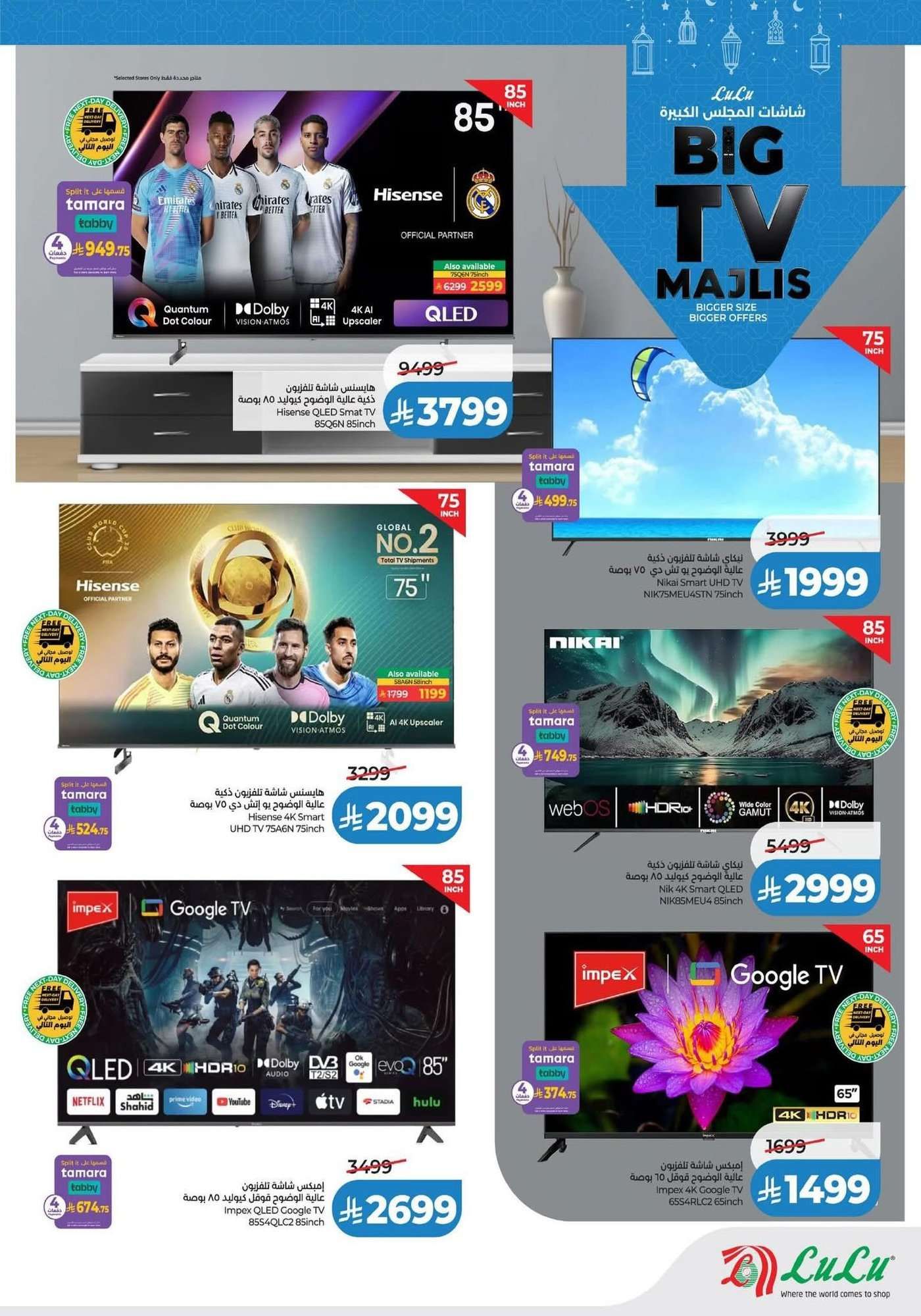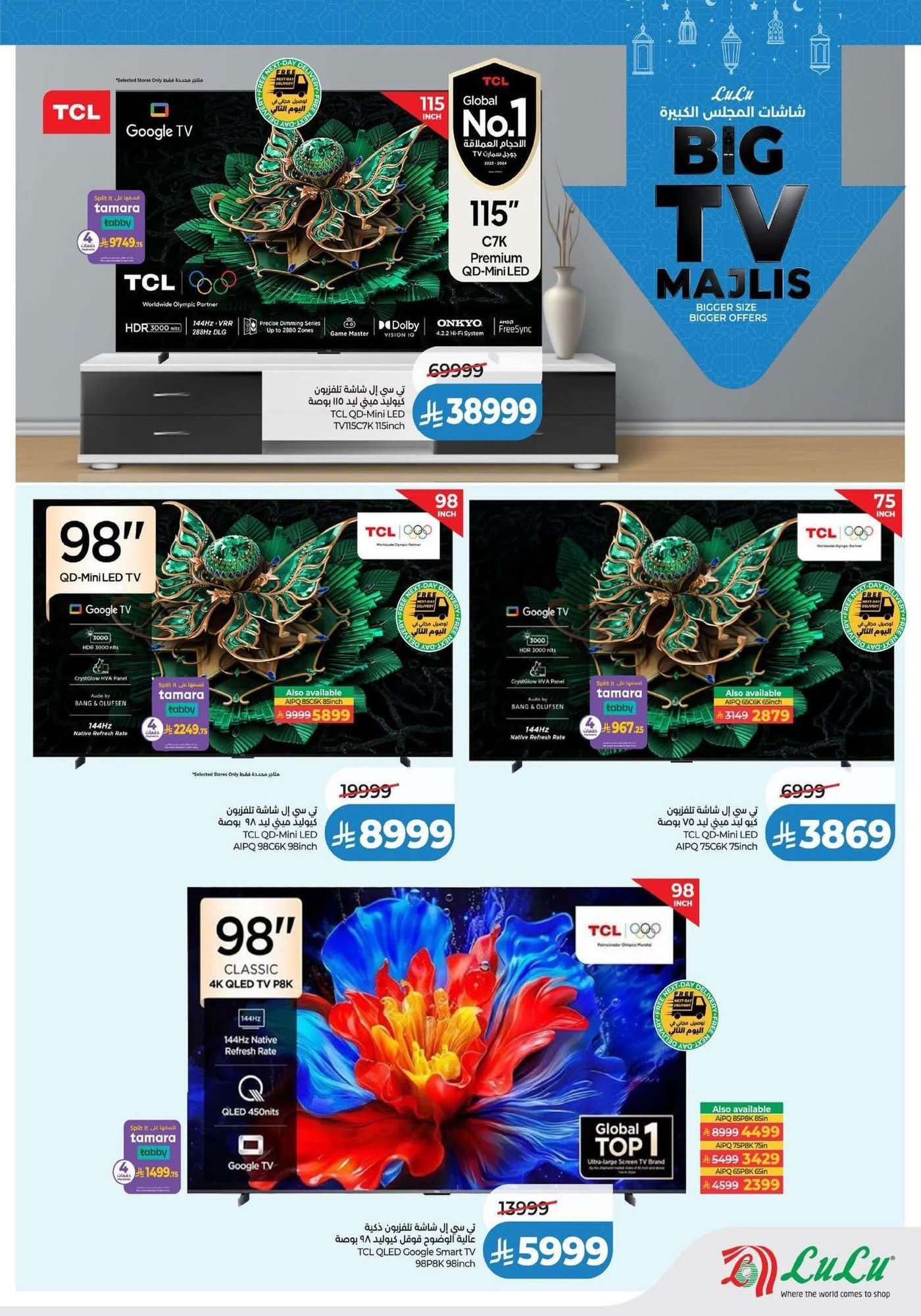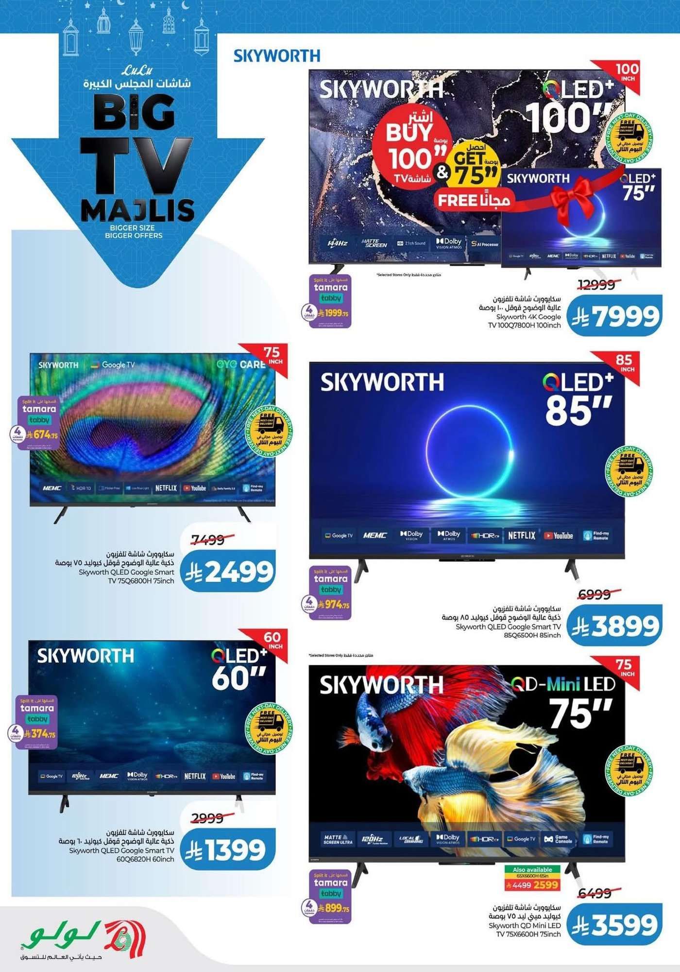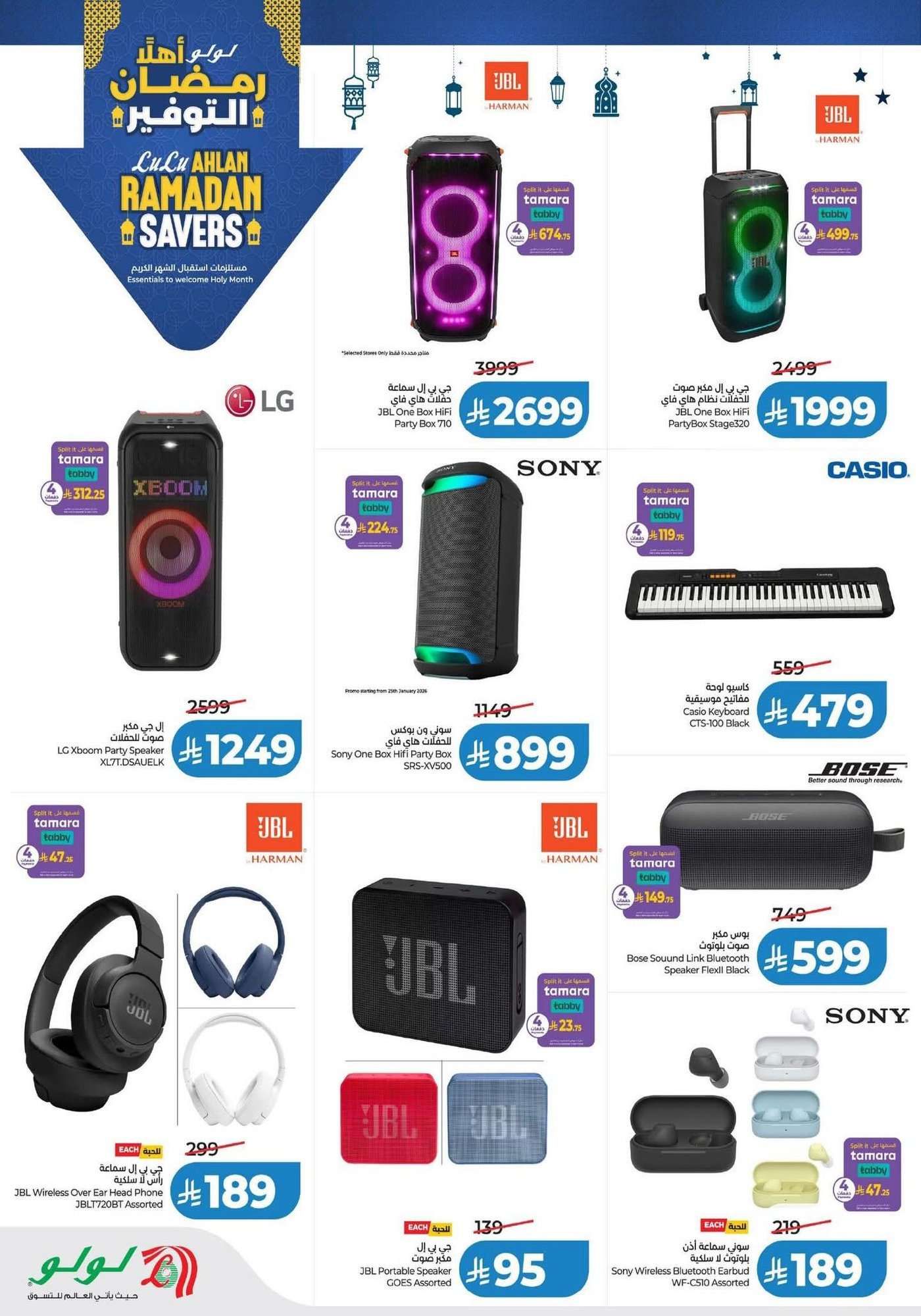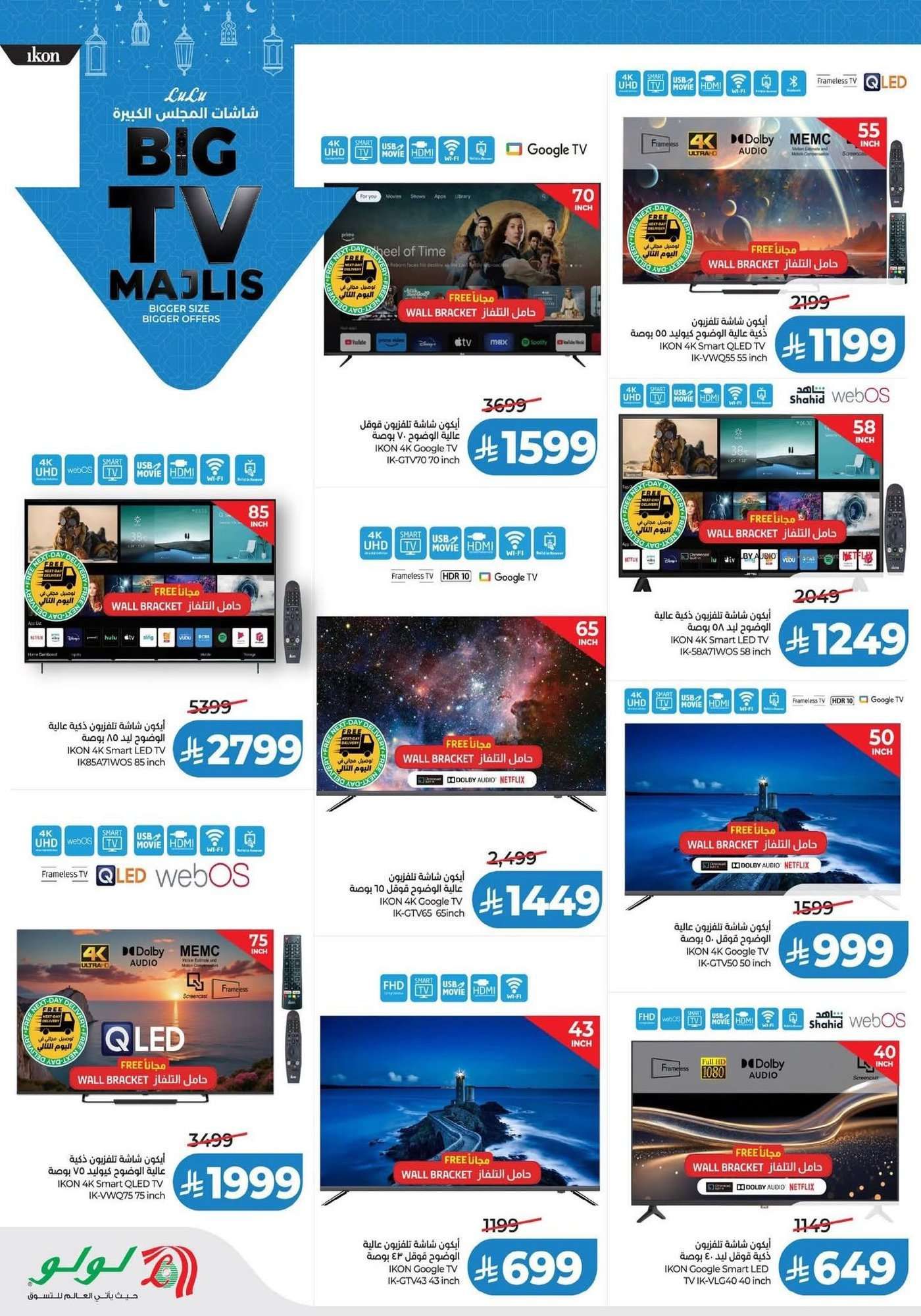 عروض لولو السعودية الاسبوعية الخميس 22-1-2026 الموافق 3 شعبان 1447هـ و تحتوي علي تشكيلة متنوعة من شاشات التلفزيون من ماركات معروفة و موثوقة لضمان جودة المنتج و بتوفر ايضا السماعات و اكسسوارات مختلفة و غيرها من المنتجات باسعار رائعة لفترة محدودة تابعونا لمعرفة كل جديد عن عروض السعودية .