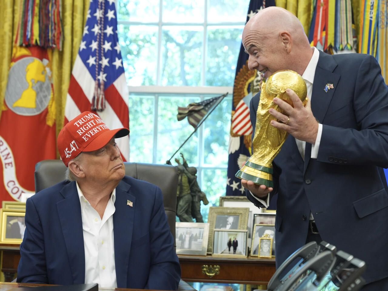 صرح رئيس الاتحاد الدولي لكرة القدم (فيفا) السويسري جياني إنفانتينو، بأن الرئيس الأميركي دونالد ترامب سوف يسلم كأس العالم للمنتخب الفائز باللقب في 19 يوليو المقبل.