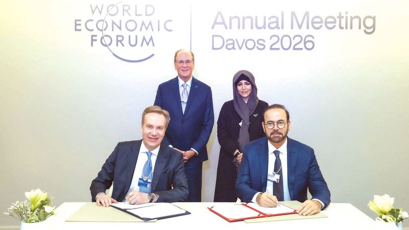 وقّع الاتفاقية وزير شؤون مجلس الوزراء وعضو مجلس قيادات المنتدى الاقتصادي العالمي، محمد عبدالله القرقاوي، والرئيس والرئيس التنفيذي للمنتدى الاقتصادي العالمي، بورغ برينده، كما شهد التوقيع رئيس مجلس إدارة «بلاك روك» والرئيس المشارك المؤقت لمجلس إدارة المنتدى الاقتصادي العالمي، لاري فينك، والعديد من كبار المسؤولين من الطرفين.