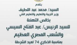 كما وجه التهنئة لرجال الشرطة البواسل، الذين ضربوا أروع الأمثلة في الفداء والتضحية، مؤكداً عمق العلاقة التي تربط رجال الشرطة بأبناء الشعب المصري، الذين يؤدون رسالة الشرف ويحملونها بكل إخلاص..