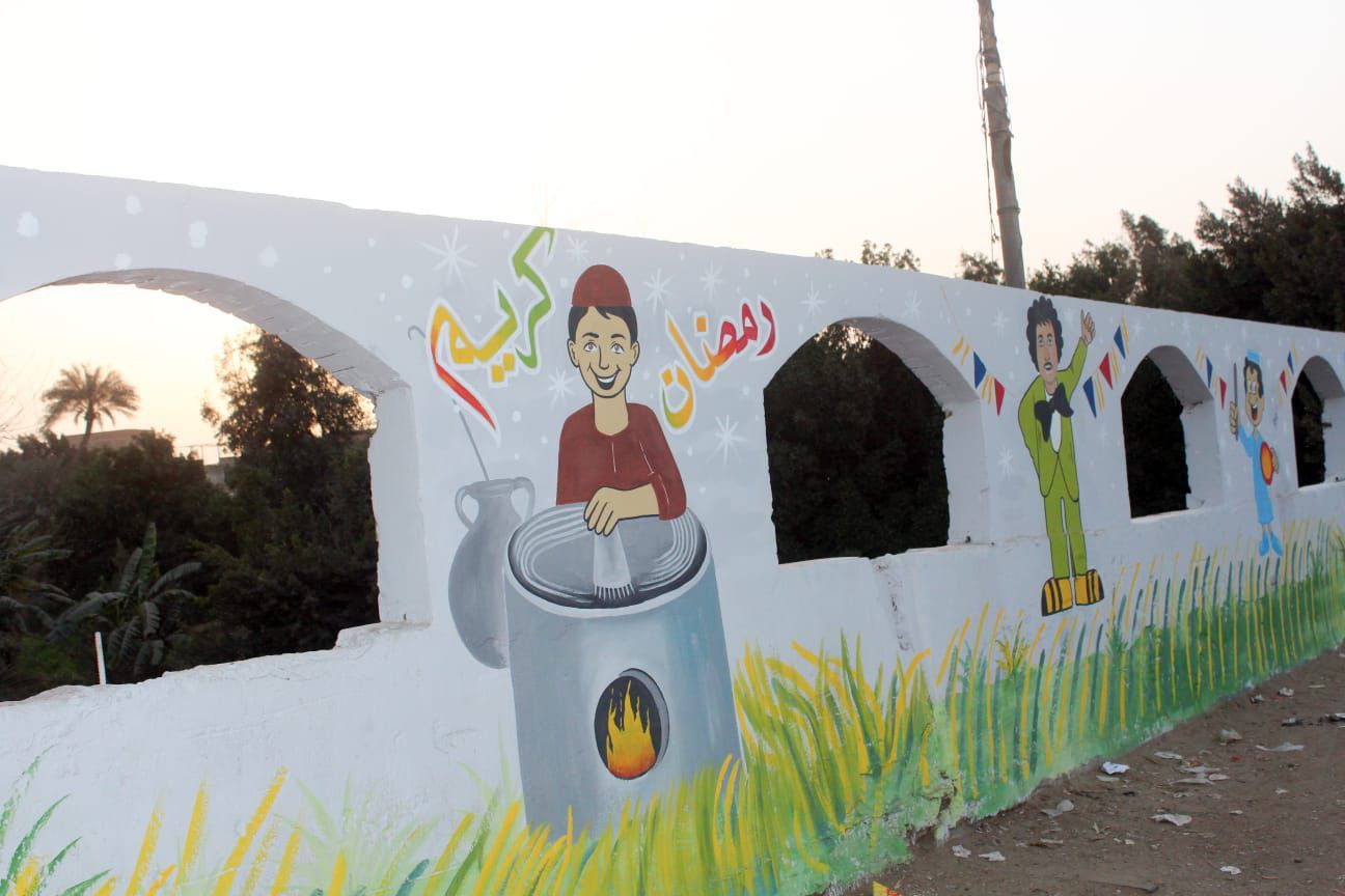 أهالى بهبيت يجملون مدخل قريتهم بروح رمضانية