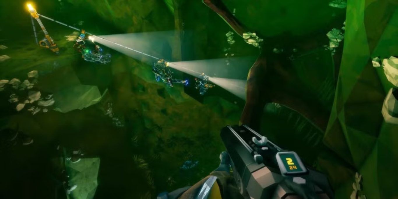 تُعد البيئات القابلة للتدمير واحدة من أعظم مزايا Deep Rock Galactic، ولم تكن بهذه المتعة منذ Battlefield Bad Company 2. يمكن تفجير ثقب في جدار صخري أو نحت درج يقود إلى عرق من Gold يصعب الوصول إليه، وهذان مجرد مثالين من طرق عديدة لاستغلال البيئة لصالح الفريق. وإذا كان المدخل المؤدي إلى الكهف التالي ضيقًا ولا يسمح بمرور الفريق كاملًا، فحينها يحين وقت الاستعانة بـ Engineer ليفتح الطريق باستخدام سلاحه.