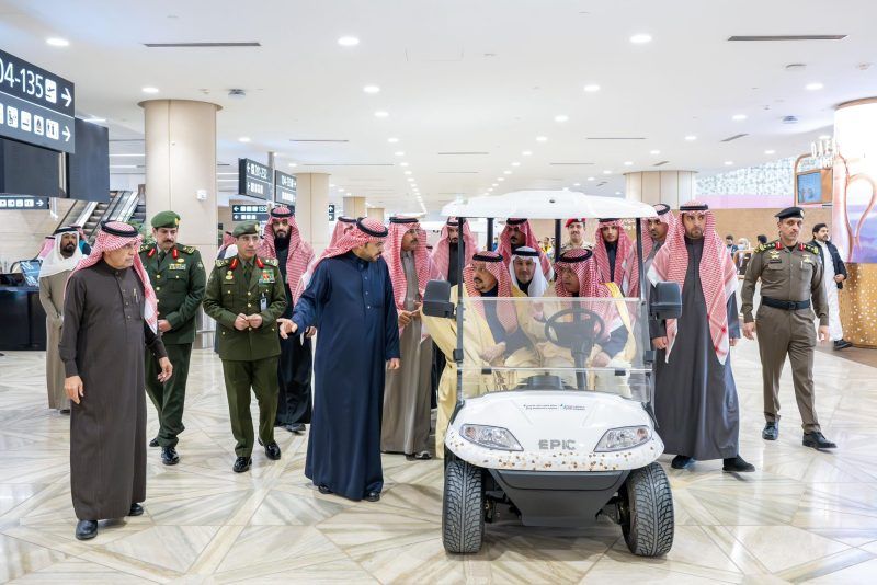 وقام سموه فور وصوله بجولة ميدانية شملت مناطق السفر، ومنصات التسجيل، وصالات المغادرة والقدوم، والأنظمة التشغيلية، اطّلع خلالها على جاهزية المرافق لاستقبال حركة المسافرين وفق أعلى المعايير التشغيلية.