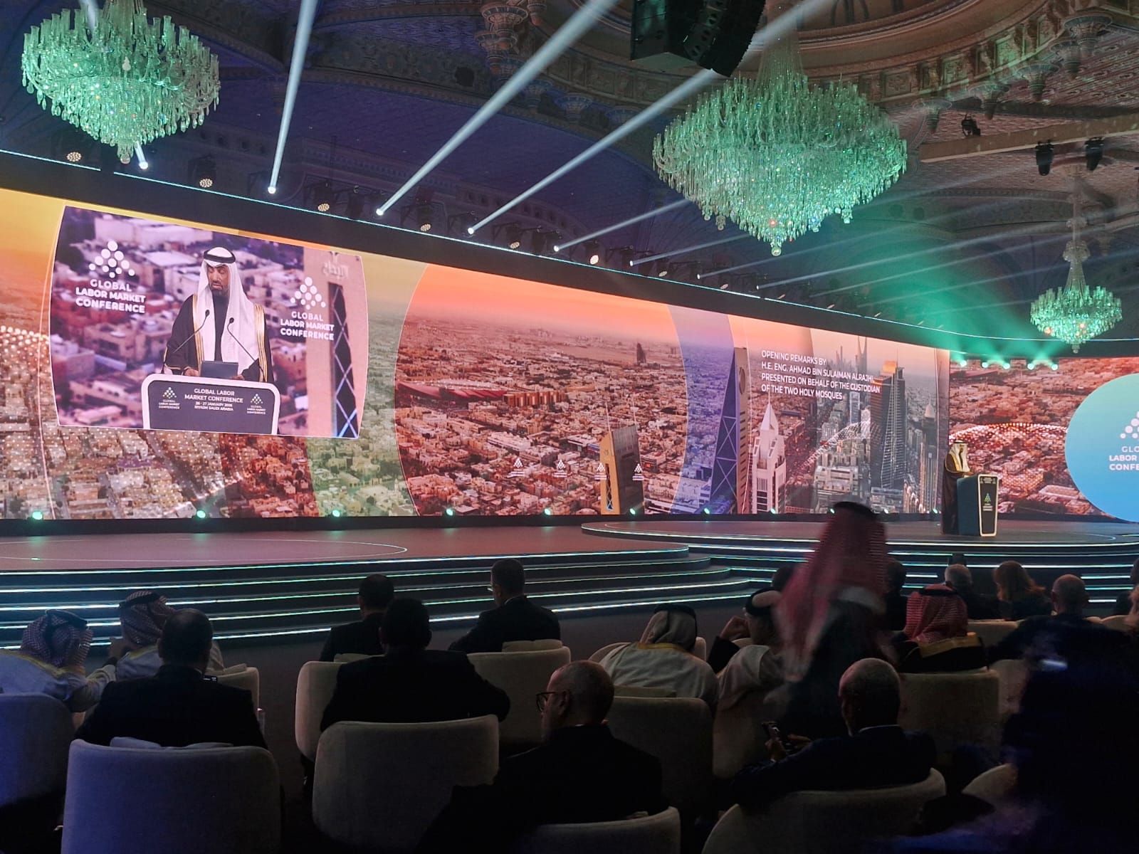 انطلقت منذ قليل، فعاليات النسخة الثالثة من المؤتمر الدولي لسوق العمل (GLMC)، تحت رعاية خادم الحرمين الشريفين الملك سلمان بن عبدالعزيز آل سعود، والذي تنظمه وزارة الموارد البشرية والتنمية الاجتماعية بالمملكة العربية ، خلال الفترة من 26 إلى 27 يناير 2026، وذلك في مركز الملك عبدالعزيز الدولي للمؤتمرات بمدينة الرياض بمشاركة العمل المصري محمد جبران