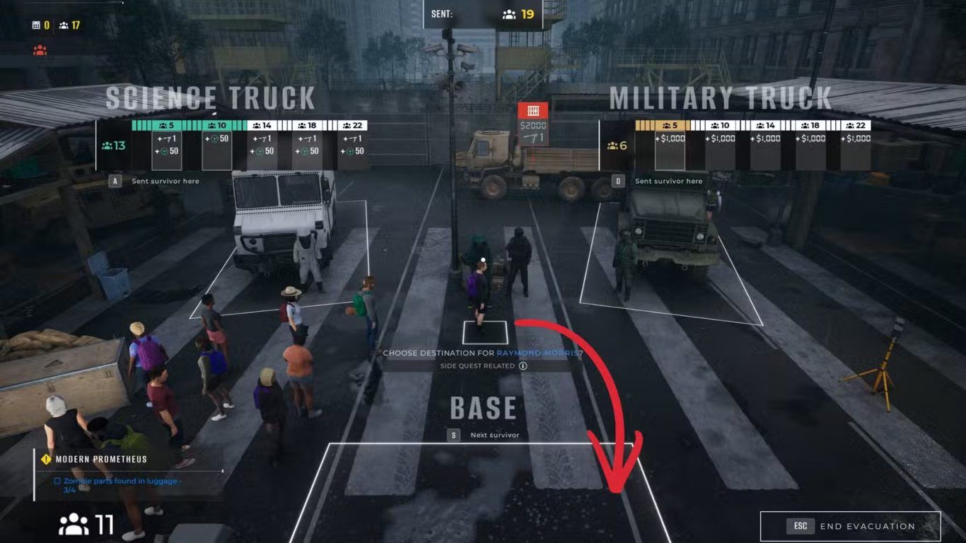 يتطلب ذلك مراجعة أسماء الناجين بعناية أثناء الإخلاء والتأكد من إبقاء Stuart داخل القاعدة حتى الانتهاء من جمع جميع أجزاء الزومبي المطلوبة وإكمال جميع متطلبات المهمة.