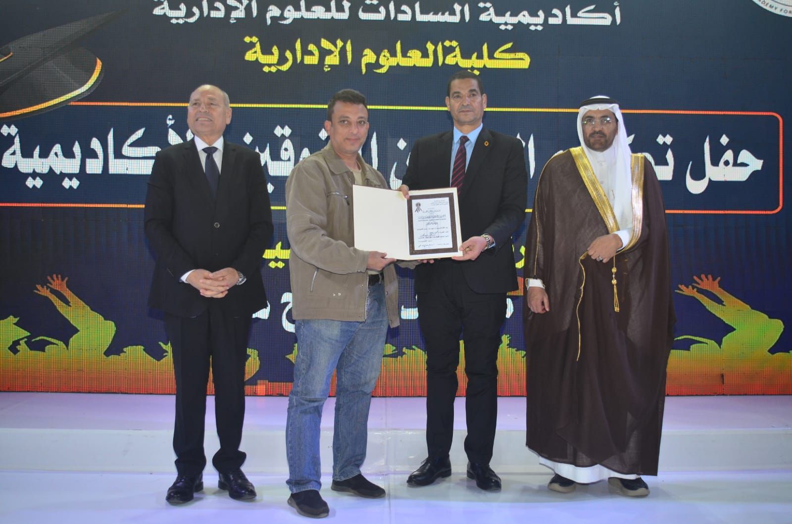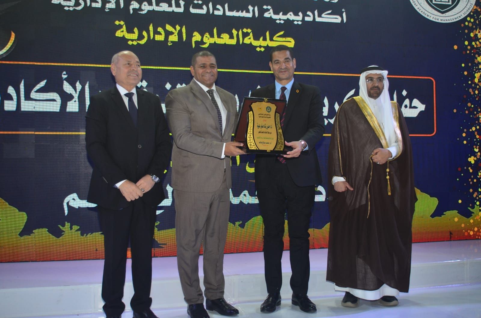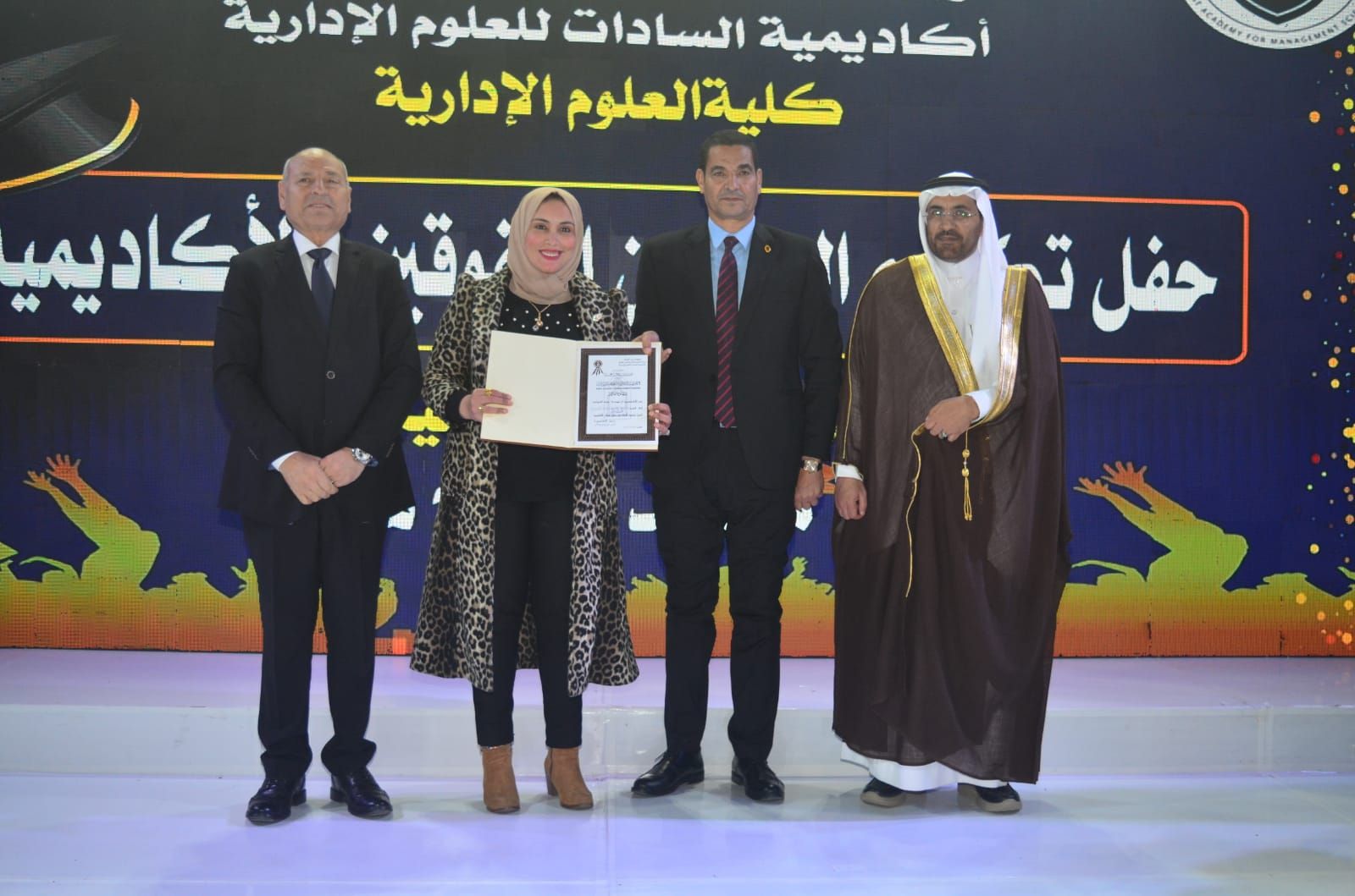 وكرّمت الأكاديمية في بداية الحفل المتفوقين من حملة الدكتوراة والماجستير بعدد من التخصصات الحيوية، من بينها إدارة الأعمال، وإدارة المستشفيات، والإدارة الرياضية، وإدارة التأمين الطبي، وإدارة الموارد البشرية، والإدارة العامة والمحلية، والاقتصاد، والمحاسبة، ونظم المعلومات، وإدارة الاستثمار والتمويل، وغيرها من التخصصات التي تلبي احتياجات سوق العمل العربي.