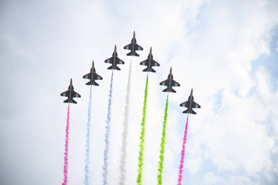 فرسان تزين سماء مدينة العين؛ حيث أقيم أمس حفل تخريج الدورة الـ50 للمرشحين، والدورة الأولى للمرشحين الجامعيين، في كلية زايد الثاني العسكرية.