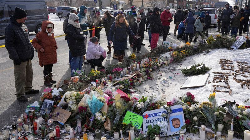 وتشهد مينيابوليس الواقعة في ولاية مينيسوتا منذ أسابيع احتجاجات متواصلة ضد انتشار وكالة الهجرة والجمارك ونشاطها. وتجمع الكثير من سكان المدينة أول من أمس، في برد قارس أمام نصب تذكاري أقيم تكريماً لأليكس بريتي في موقع إطلاق النار.