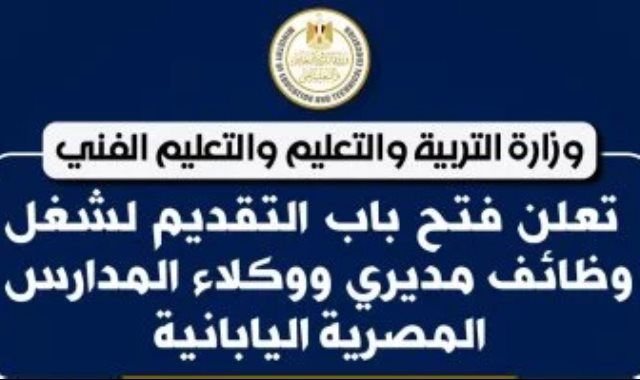 فتح باب التقديم لشغل وظائف مديرى ووكلاء المدارس المصرية اليابانية