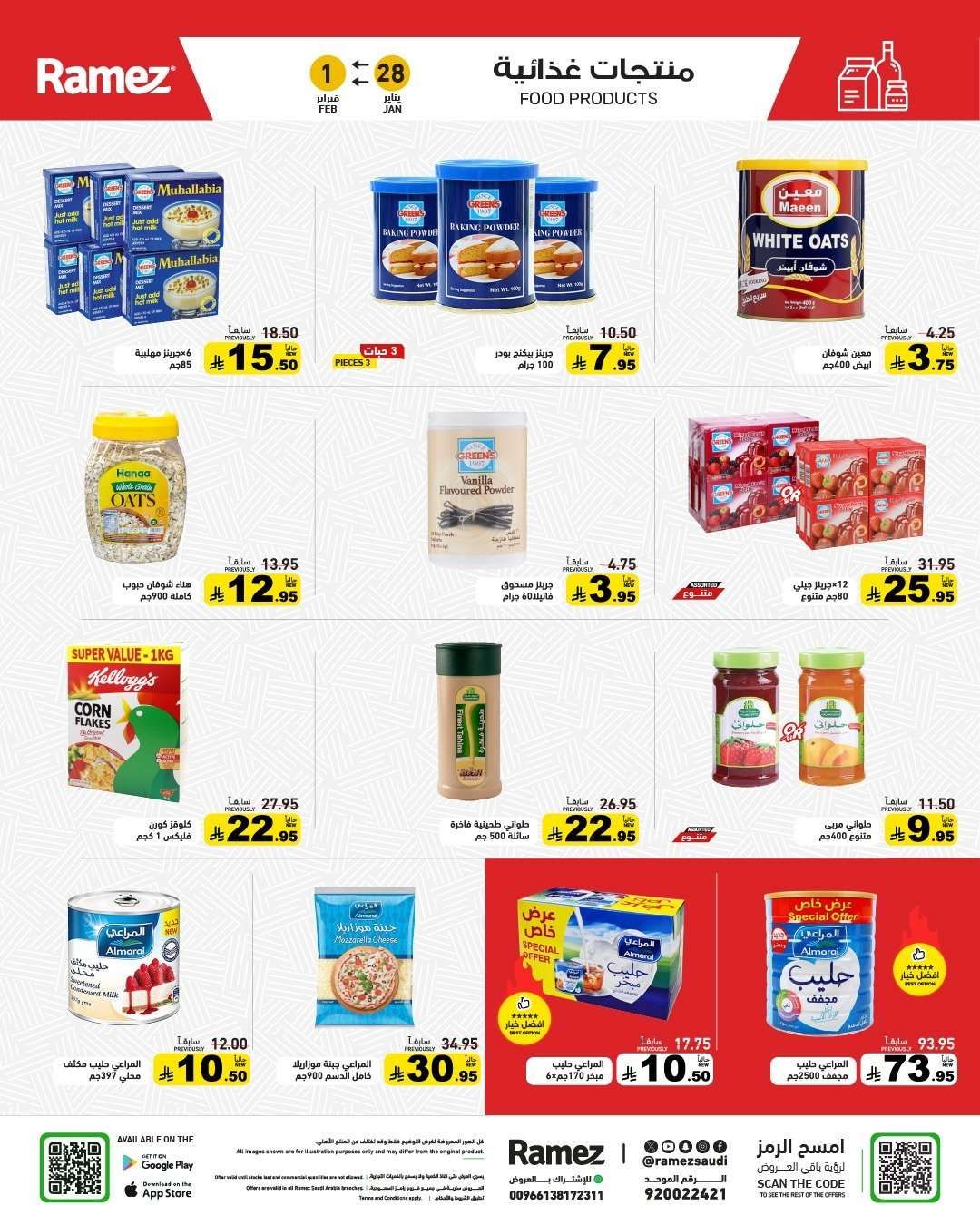 عروض أسواق رامز السعودية الأربعاء 28 يناير 2026 الموافق 9 شعبان 1447هـ و تقدم منتجات غذائية منها جبنة شيدر ولحم مبرد ومخبوزات وزيت جوز وحلويات وشوكولاتة وقهوة وزيت زيتون وأرز فاخر وفاكهة ومأكولات بحرية ودجاج وتكتمل بأجهزة تشمل صانعة قهوة وفرن بيتزا وخلاط ومكواة بخار وشاشة ذكية وقلاية هوائية ومحضرة طعام وميكروويف ومفرمة خضروات