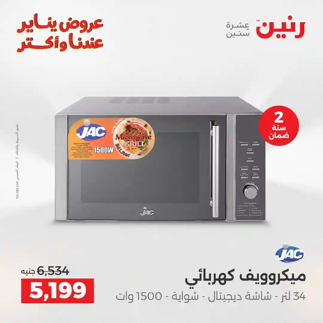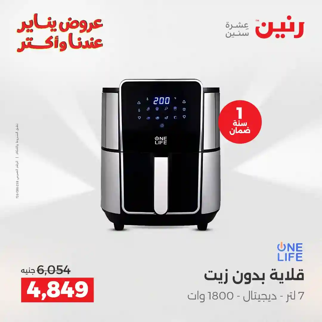 تسرى عروض رنين من يوم الخميس للسبت 29 – 30 – 31 يناير 2026 للاجهزة الكهربائية بجميع الفروع