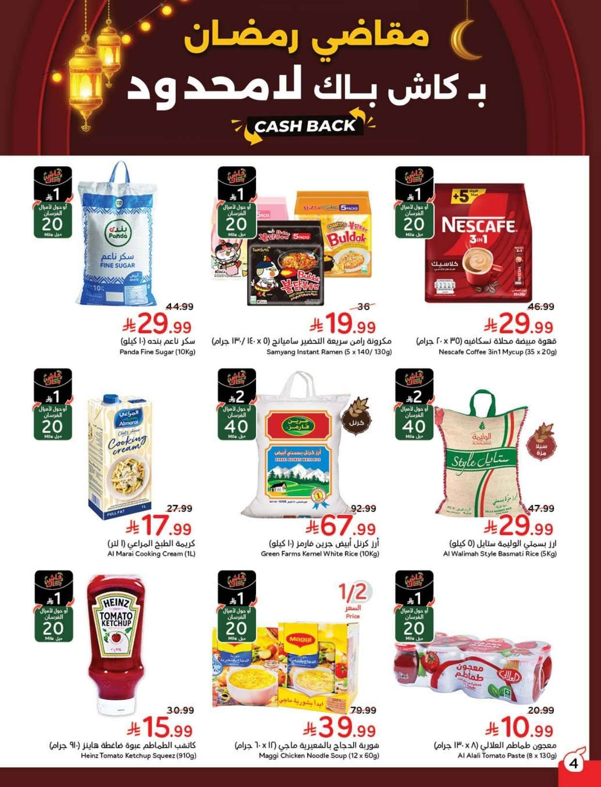 تشمل مجلة عروض بنده هذا الاسبوع المنتجات الغذائية و توفر سكر الأسرة وأرز الشعلان وزيت عافية ودجاج الوطنية المبرد وبيض المائدة وحليب نيدو البودرة ومكرونة قودي وتونة حدائق كاليفورنيا ومعجون طماطم السعودية وشاي ليبتون والبطاطس والبصل