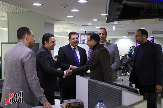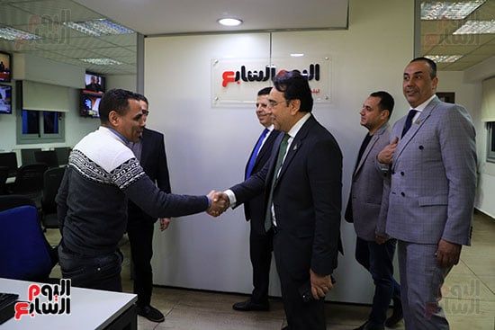 ورحب الكاتب الصحفي عبد الفتاح عبد المنعم، رئيس التحرير، بوفد أعضاء مجلس النواب، واصطحبهم في جولة داخل صالة التحرير استوديو اليوم السابع، واطلعوا على طبيعة العمل داخل صالة التحرير في الأقسام المختلفة.