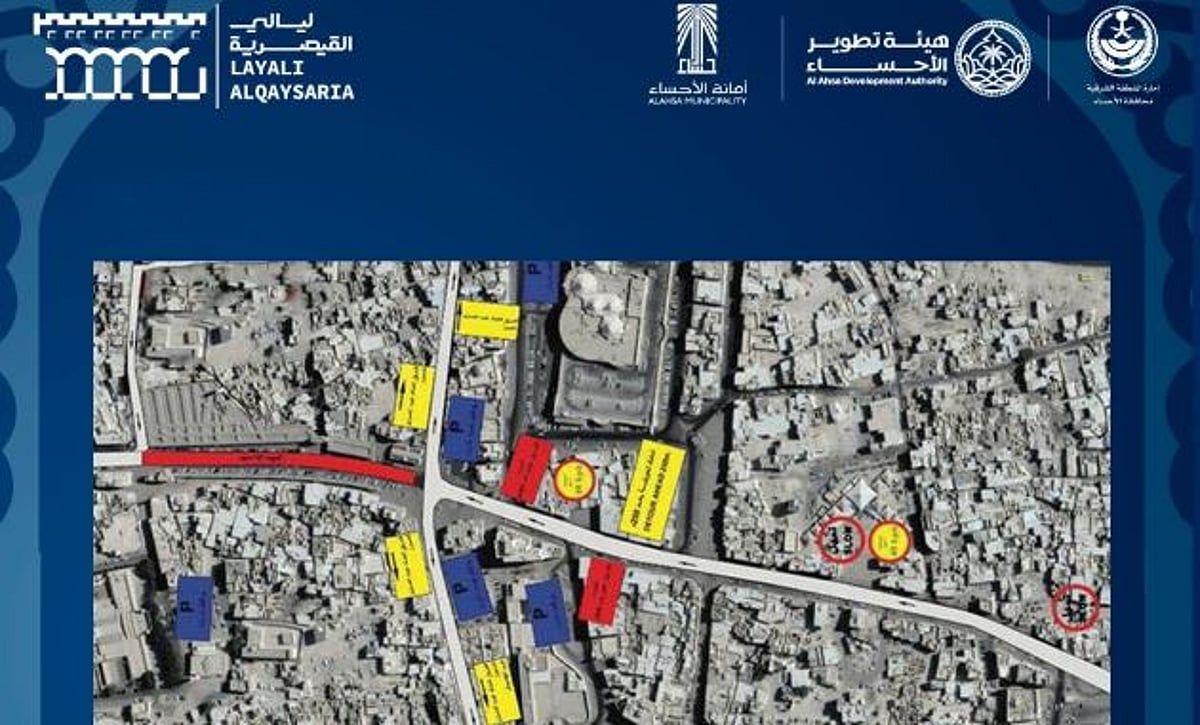 أعلنت أمانة الأحساء، بالتعاون مع إدارة مرور الأحساء، إغلاق الطريق المحاذي لسوق القيصرية اعتبارًا من صباح اليوم الأربعاء، ضمن تنفيذ خطة مرورية بديلة تزامنًا مع إقامة مهرجان «ليالي القيصرية».