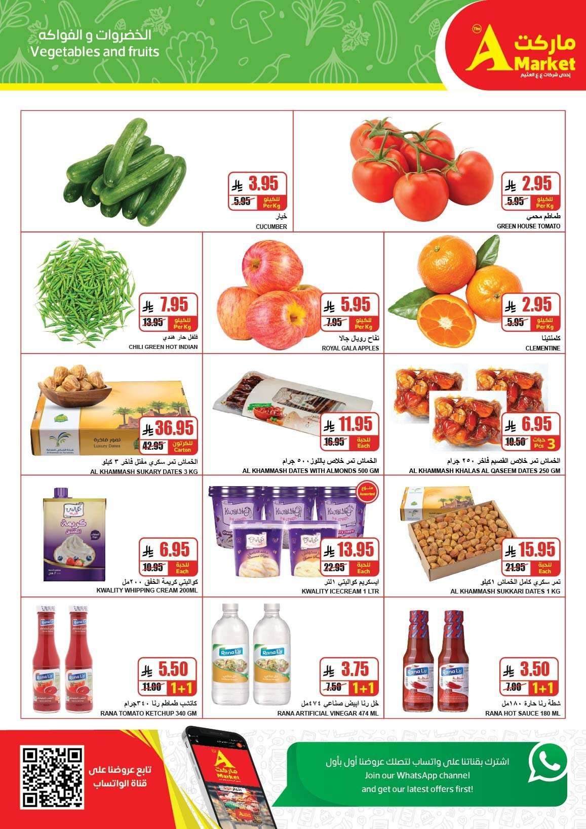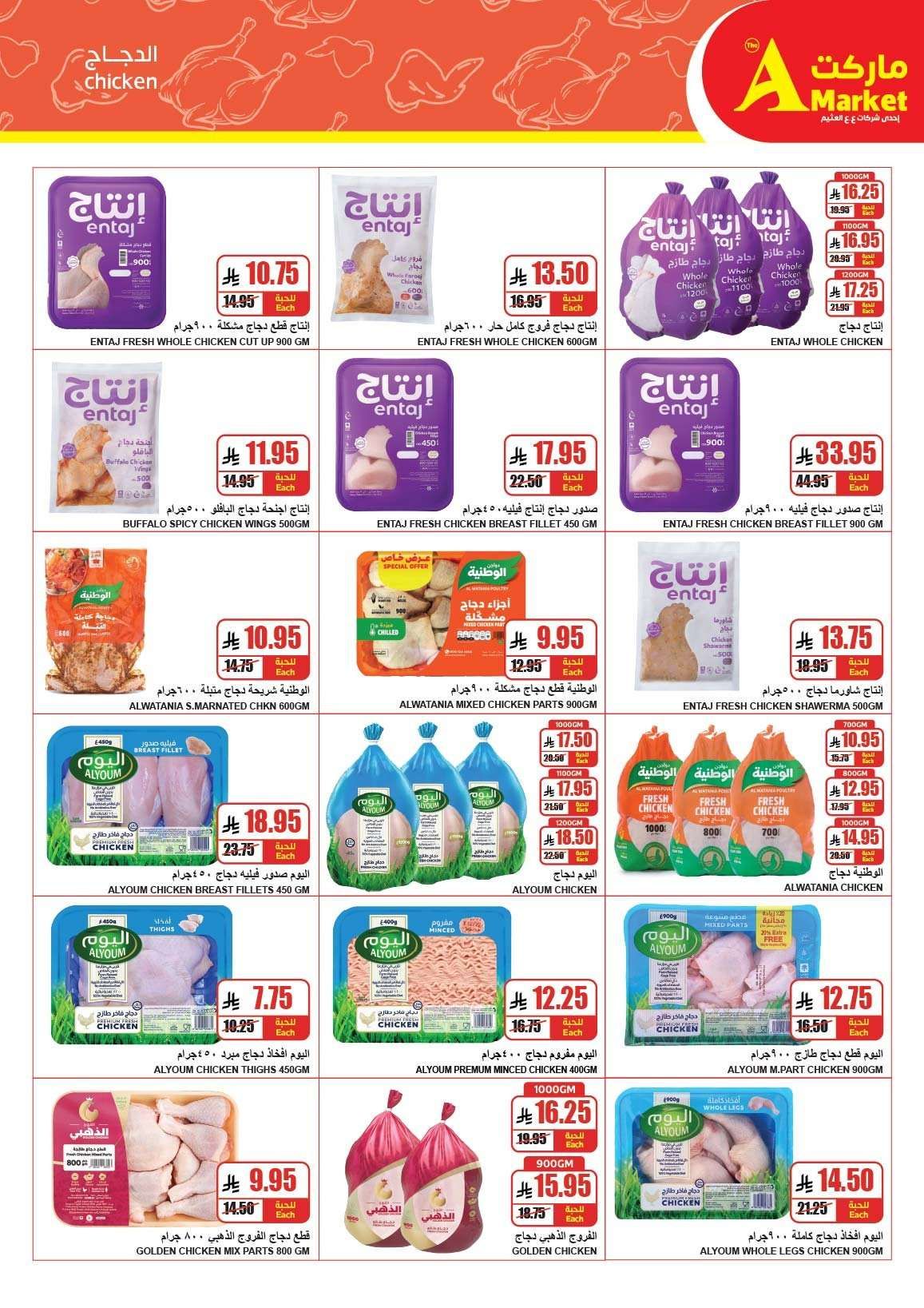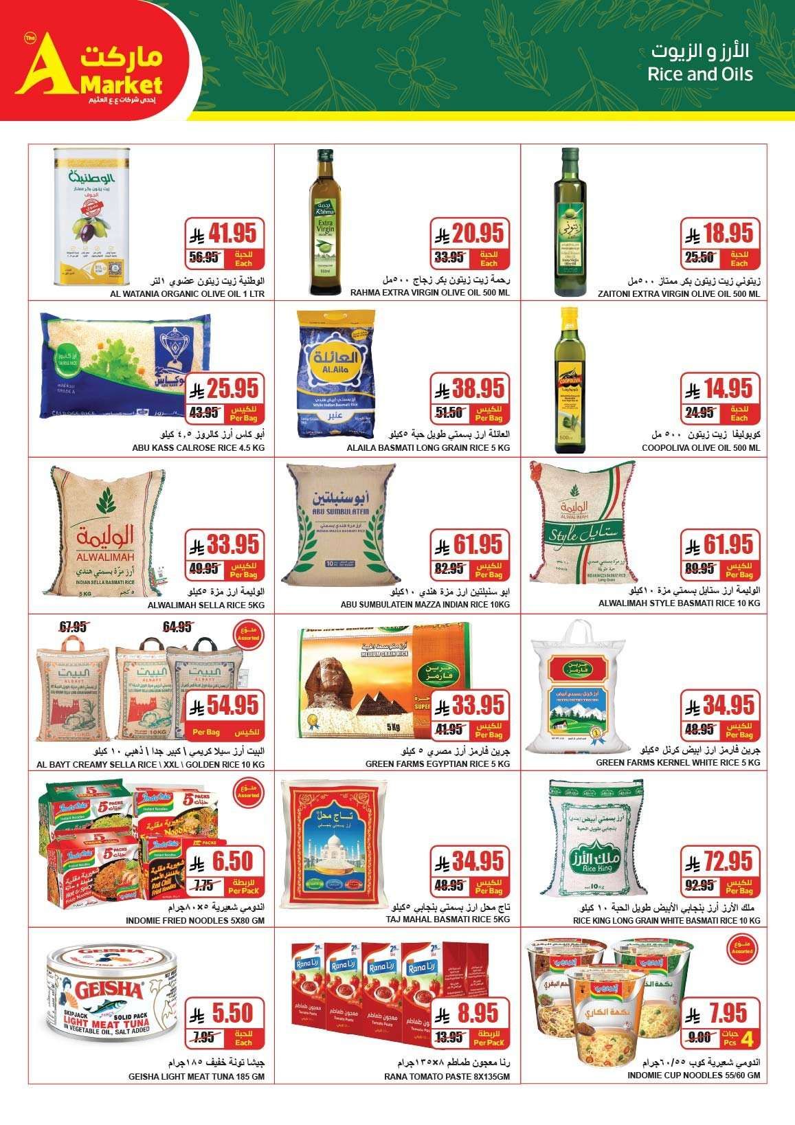 إيه ماركت الرياض الأربعاء 9 شعبان 1447هـ الموافق 28 يناير 2026 و تبدا بالأجهزة المنزلية مثل قلاية بدون زيت وخلاط يدوي وسخان مياه ومحمصة توست ومكواة بخار ومروحة كهربائية وشاشة ومبرد هواء وفرن ميكروويف ومحضر طعام و تشمل التمور والأرز المصري الحليب طويل الأجل البيض الخضروات اللحم المبرد الدجاج زيت القلي و السكر و الشاي