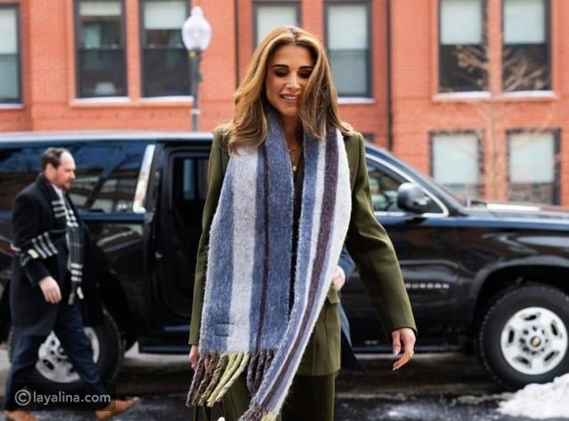 التفاف الوشاح حول العنق بأسلوب انسيابي منح الإطلالة دفئًا وأناقة إضافية، كما عكس جانبًا إنسانيًا ناعمًا يتقاطع مع الطابع الرسمي، وهو توازن تحرص عليه الملكة رانيا دائمًا في ظهورها العام.
