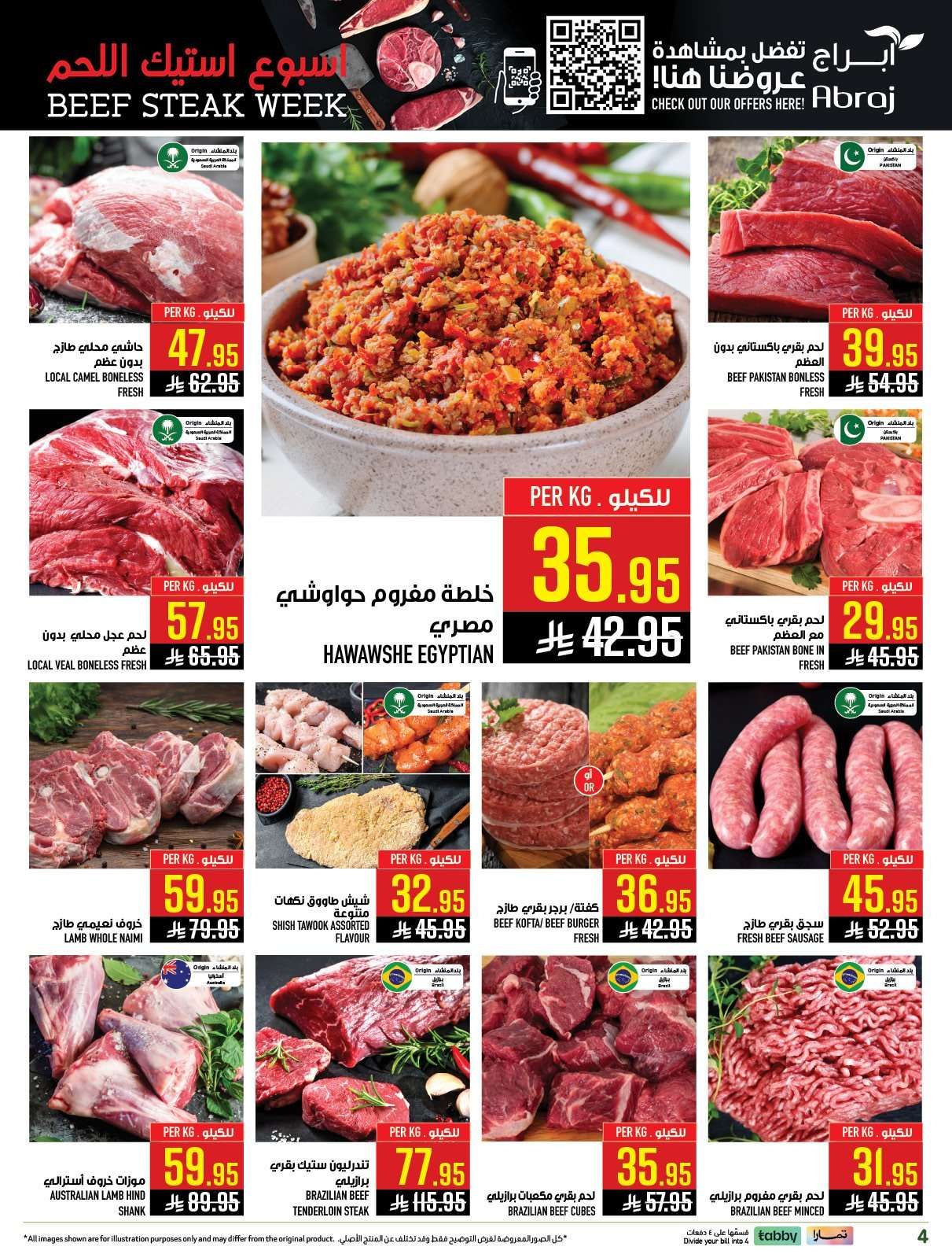 - كفتة أو برجر بقري طازج 36.95 ريال