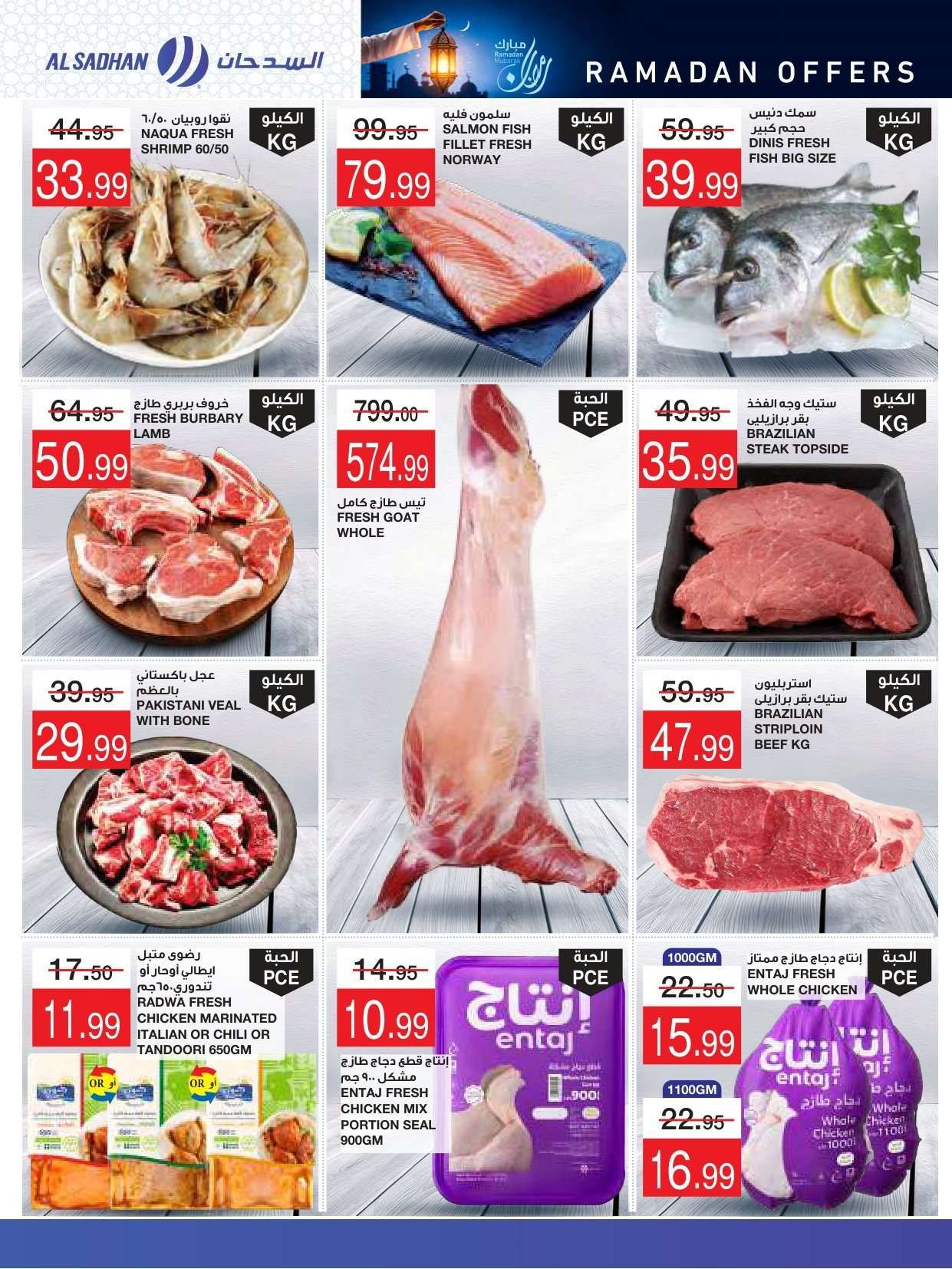 عروض السدحان الأسبوعية الأربعاء 9-8-1447هـ الموافق 29 يناير 2026 و تبدأ بالأجهزة و تشمل غسالة ملابس وموزع مياه منزلي وجهاز تبخير الأطعمة ومحضرة السلطات ومكيف هواء صحراوي ومكينة صنع الفشار وكشاف طوارئ ثم ننتقل للمنتجات الغذائية و تحتوي لحم العجل وسمك الهامور والزبدة وجبنة الموزاريلا وزيت بذرة القطن والقهوة واللبنة وشرائح الخيار والشمام والدجاج المبرد