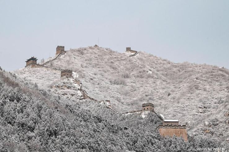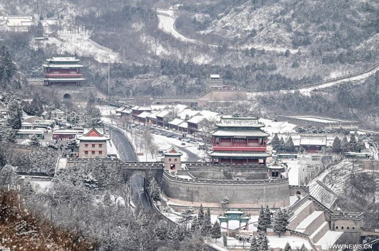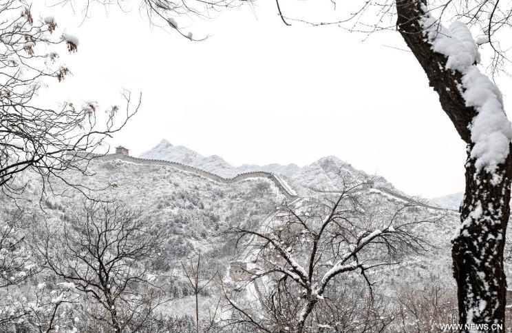 زينت الثلوج المتساقطة على العاصمة الصينية بكين سور الصين العظيم الذى يعد أحد عجائب الدنيا، وذلك حسبما نشر موقع وكالة الأنباء الصينية شنخوا صورا.