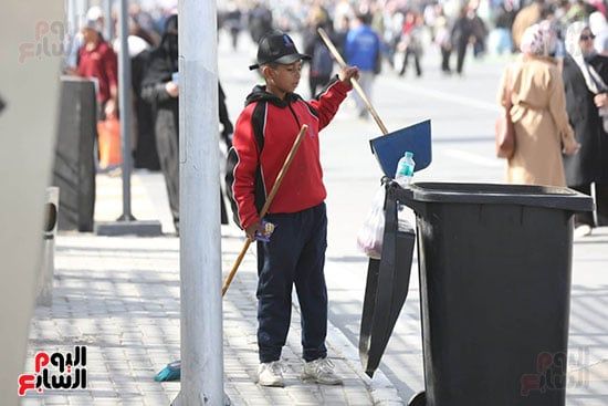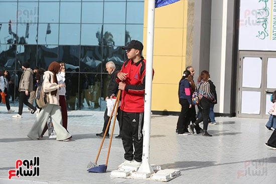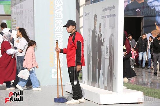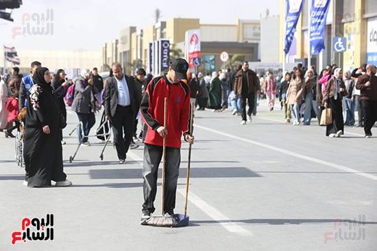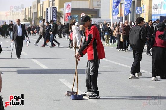 يقفون في كل مكان عند المداخل، في الساحات المفتوحة، داخل الأروقة، وبين أجنحة دور النشر، يعرفون مهامهم بدقة لافتة، يتحركون بهدوء، يراقبون الأرض قبل أن تلتقطها عين الزائر، ويتدخلون سريعًا حتى لا تعكر مخلفات صغيرة صفو مشهد ثقافي كبير.