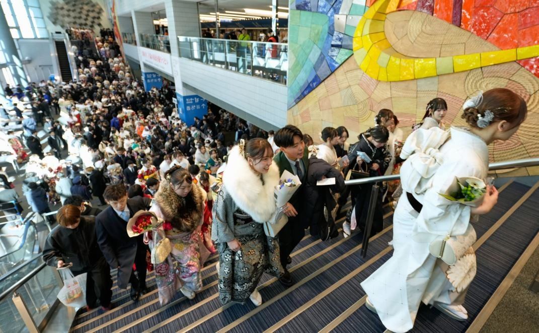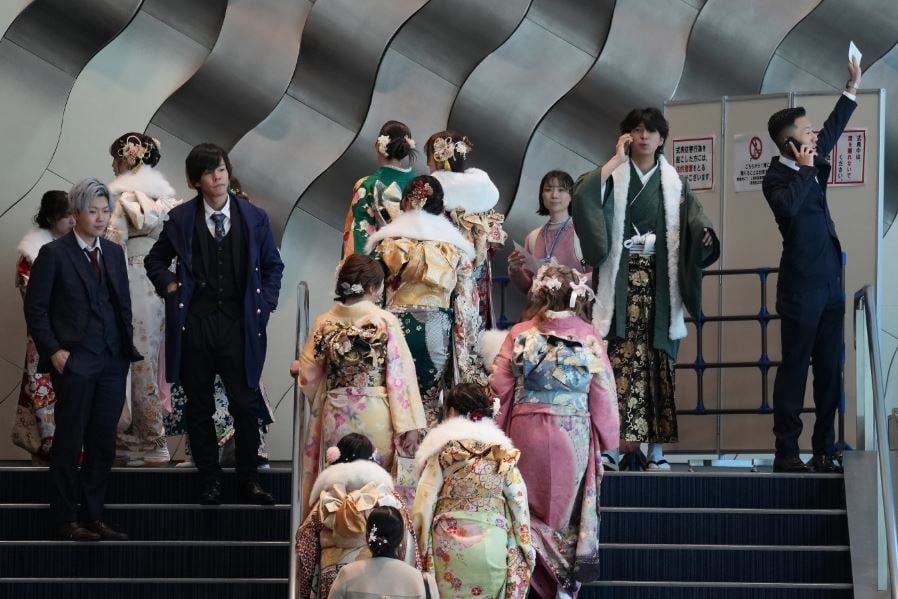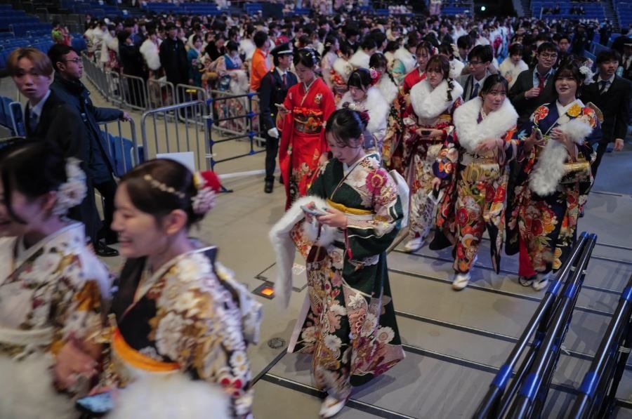 شهدت يوكوهاما، فى اليابان احتفل الشابات اللواتي يرتدين الكيمونو ذو الأكمام الطويلة بألوان زاهية والشباب الذين يرتدون الملابس الرسمية والتقليدية بيوم بلوغ سن الرشد في اليابان وهو اليوم المخصص للأشخاص الذين بلغوا سن العشرين.