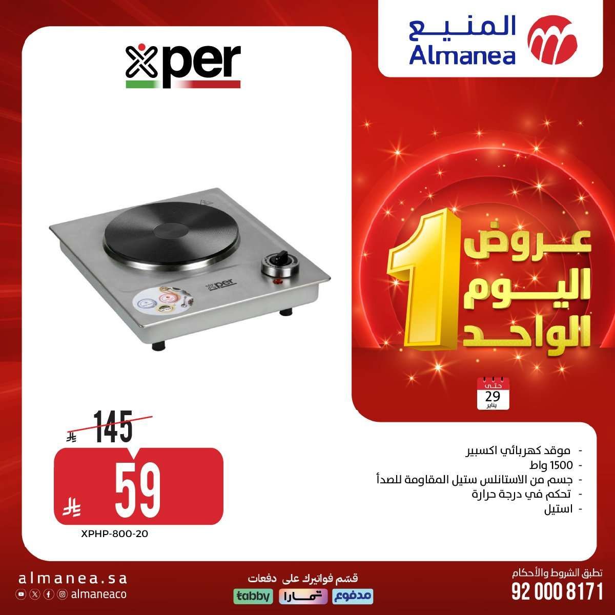 - موقد كهربائي اكسبير 1500 واط استيل 59 ريال