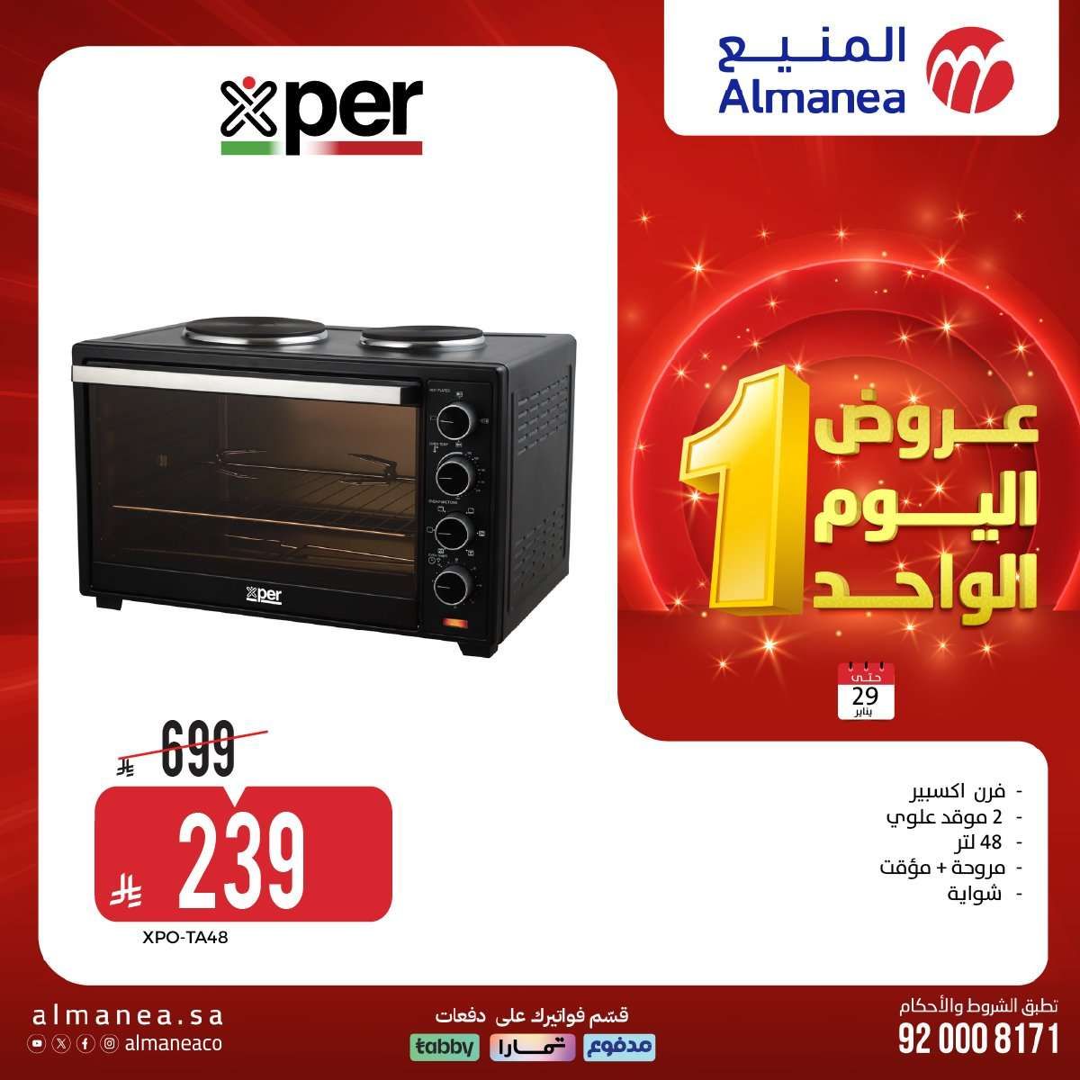 - فرن اكسبير 48 لتر مع 2 موقد علوي وشواية 239 ريال