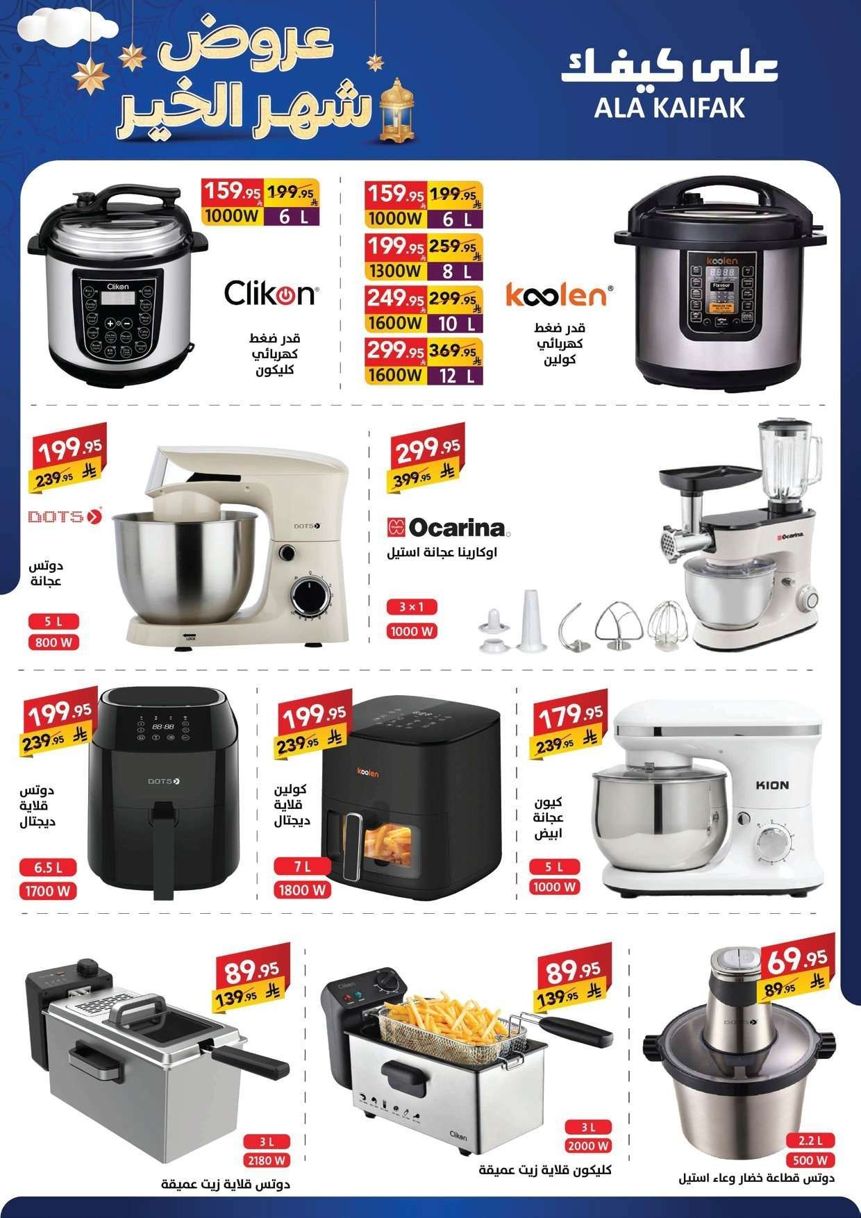 عروض شركة علي كيفك مستمرة حتي الخميس 5-2-2026 الموافق 16 شعبان 1447هـ و تحتوي علي افضل العروض علي الاجهزة و الادوات المنزلية و بمناسبة شهر رمضان الكريم بتقدم تخفيضات مميزة علي اسعار جميع المنتجات و بتوفر ايضا مستلزمات المنزل و الادوات الخاصة بتحضير الطعام و غيرها من المنتجات ابقوا معنا ليصلكم كل جديد