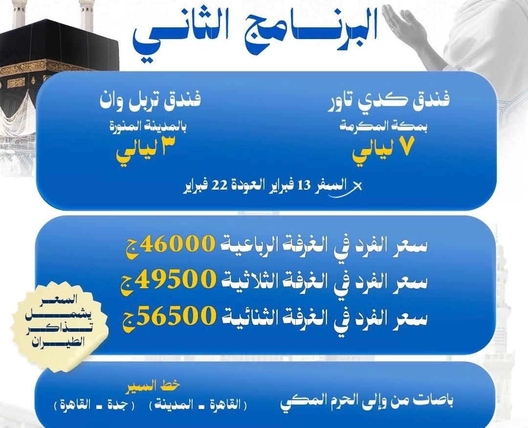 تبدأ وزارة التضامن الاجتماعي ممثلة في المؤسسة القومية لتيسير الحج التابعة الوزارة فى تنظيم أول برامج لأداء العمرة خلال شهر شعبان اعتبارا من يوم 13 فبراير، حيث سيتم تنظيم مستويين الأول والثانى.