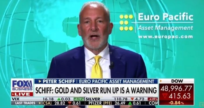 وقال شيف إن مؤشرات الذهب والفضة تعكس اقتراب أزمة مالية واسعة النطاق، مؤكدًا أن العالم يتجه نحو أزمة في الدولار الأميركي، قد تكون تداعياتها أشد من الأزمات السابقة، في ظل السياسات النقدية الحالية والديون المتراكمة.