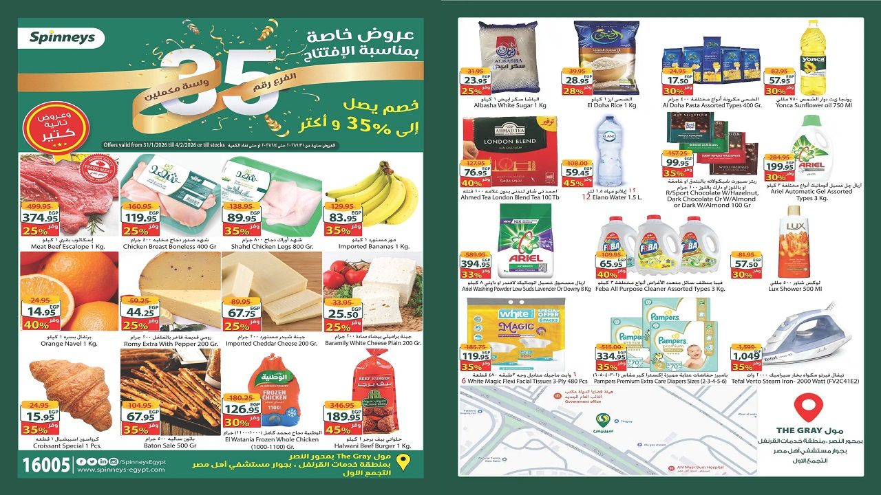 عروض سبينس الجديدة تسرى من 31 يناير حتى 4 فبرابر 2026 افتتاح فرع التجمع الاول الجديد او حتى نفاذ الكمية بجميع الفروع