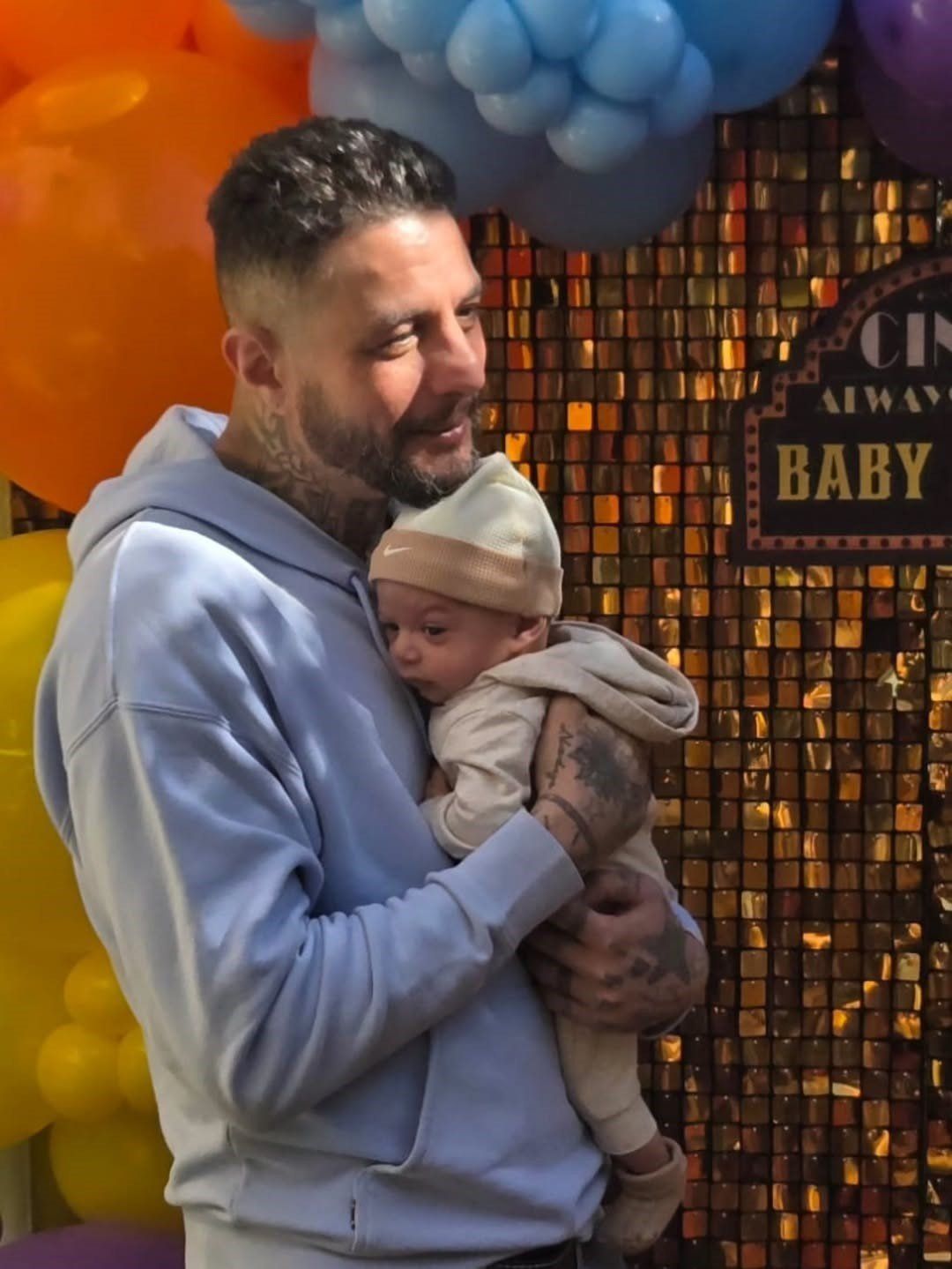 احمد الفيشاوي يحمل طفلاً