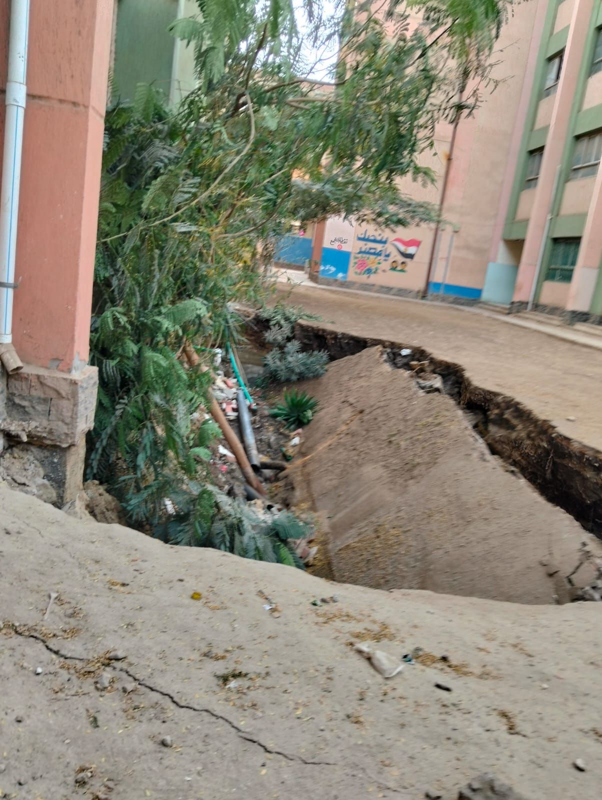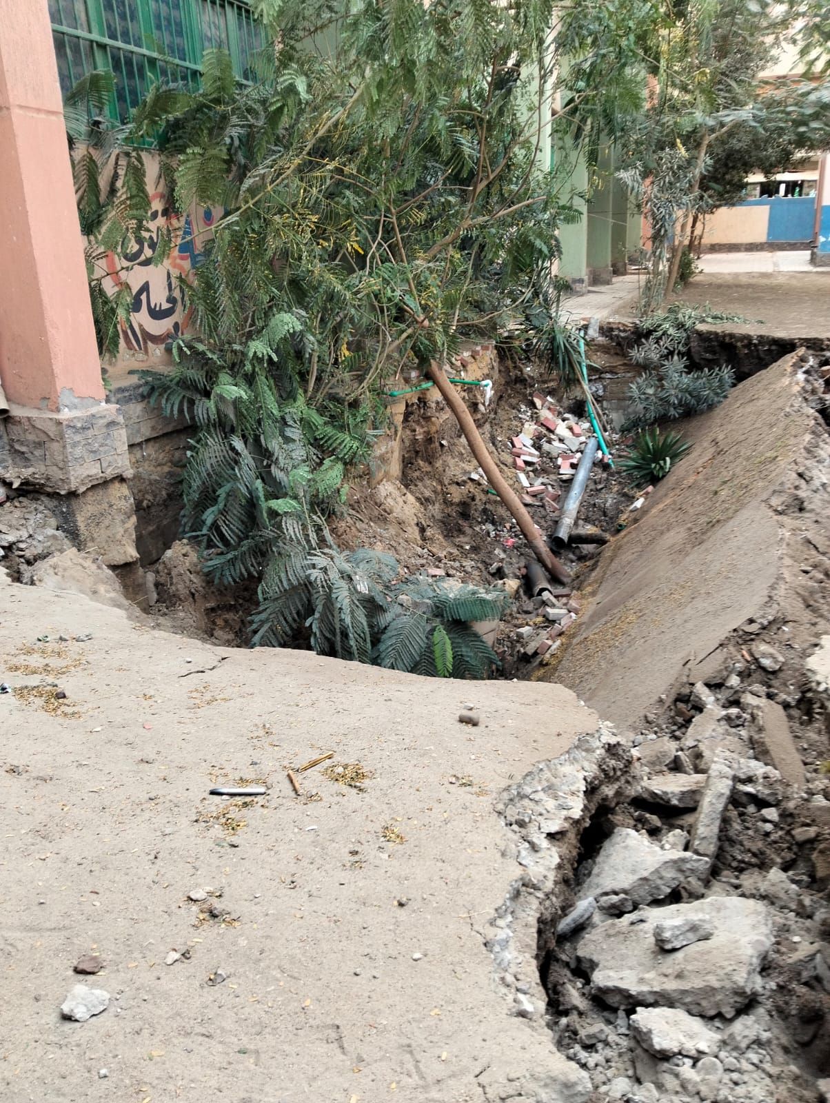 هبوط أرضي كبير داخل فناء المدرسة