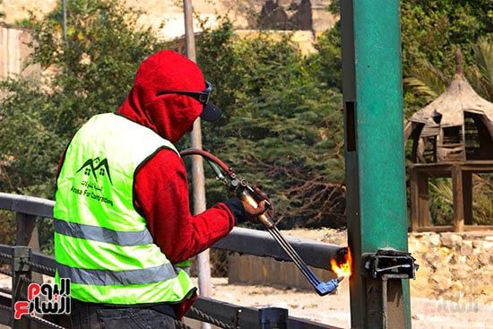 العمال في قلب الحدث أثناء إزالة الكوبري
