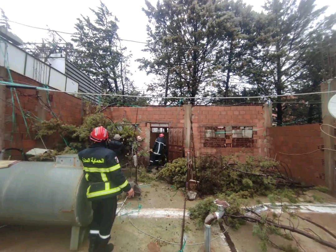 في حين بولاية الجزائر وببلدية الحراش سجل سقوط شجرة على جدار منزل رقم 51 بشارع أحمد حميدوش - سيدي مبارك دون تسجيل خسائر بشرية.