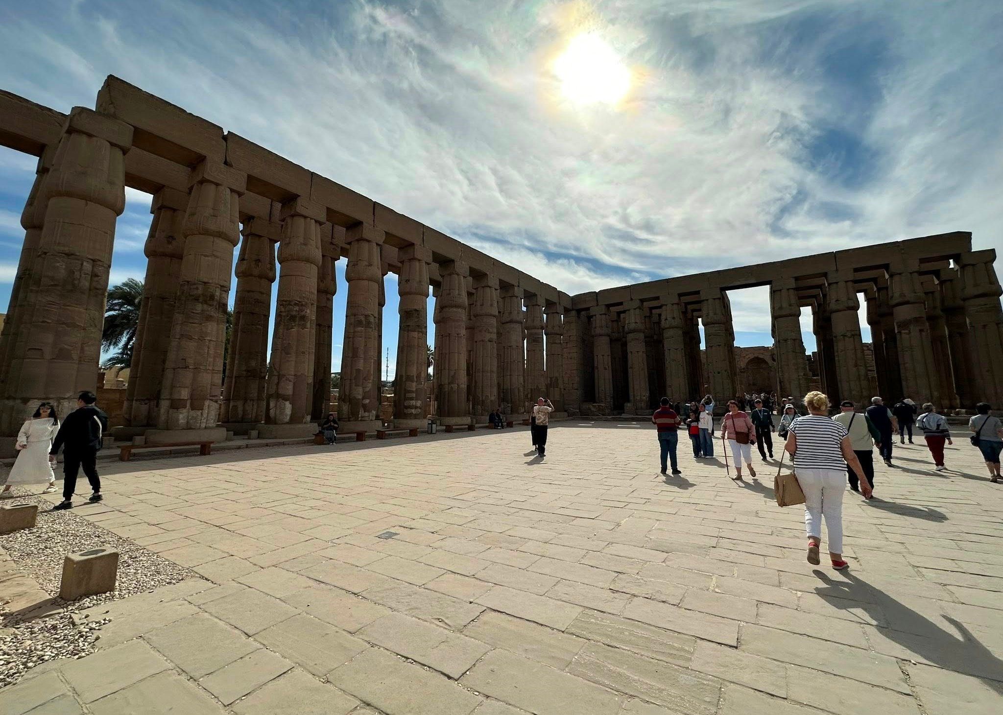 توافد السائحين فى قلب معبد الأقصر للإستمتاع بالتاريخ القديم