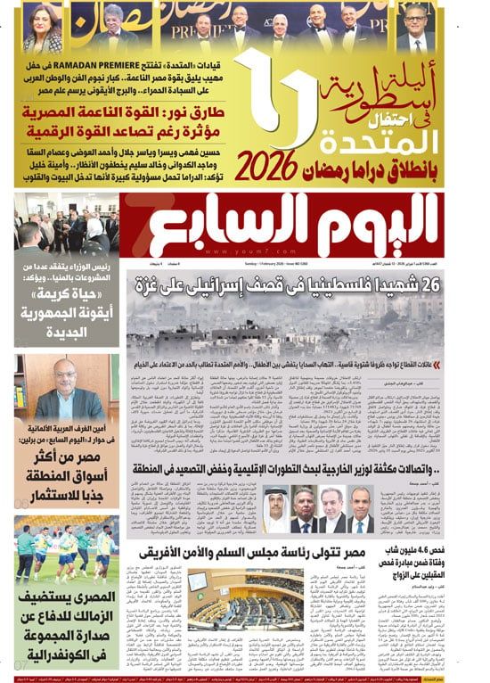 تنشر اليوم السابع فى عددها الصادر غدا، تفاصيل هامة حول العديد من الأحداث الجارية على الساحتين الداخلية والخارجية: ليلة أسطورية فى احتفال المتحدة بانطلاق دراما رمضان 2026