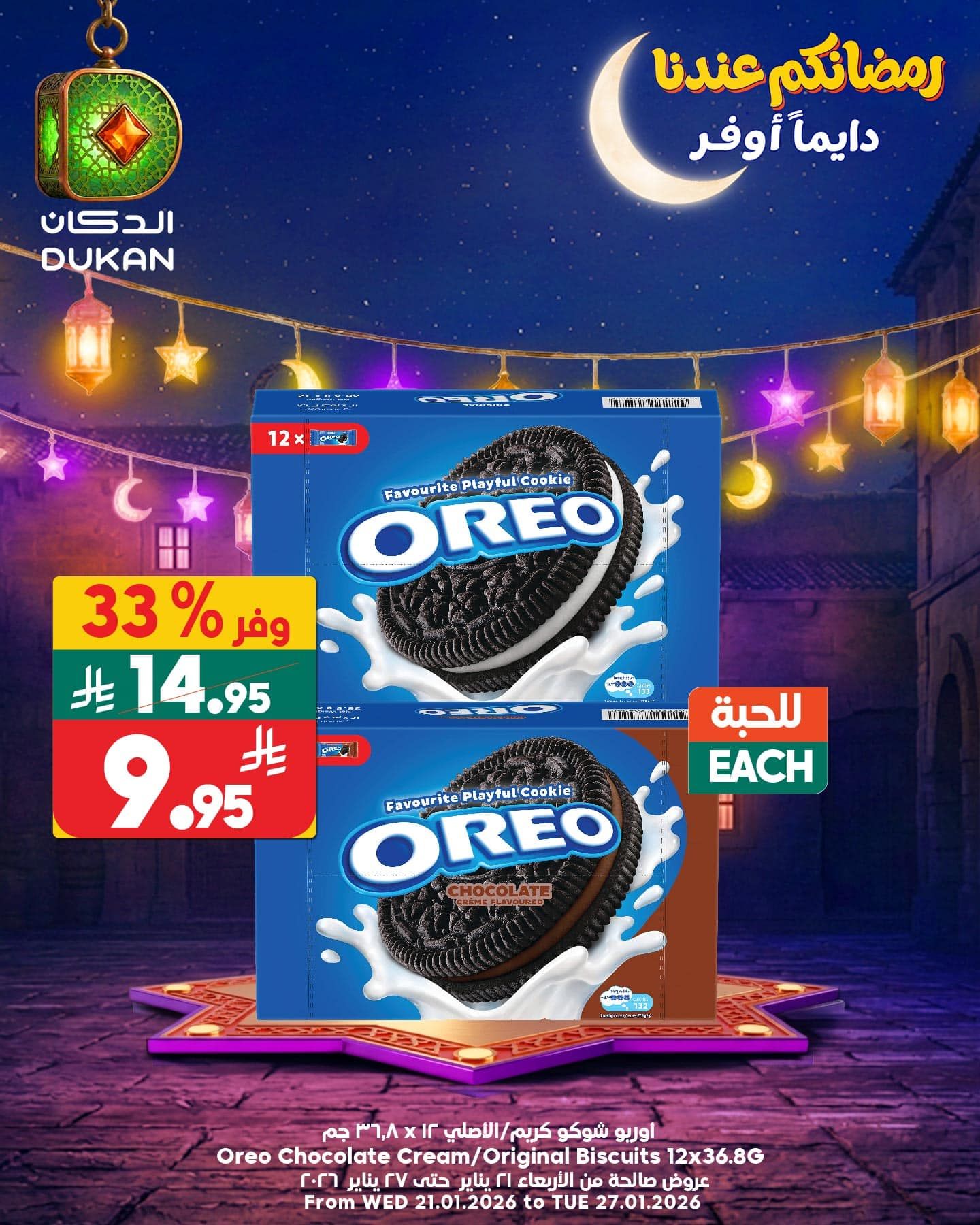 بنقدم ليكم احدث الدكان الاحد 1-2-2026 الموافق 13 شعبان 1447هـ أوريو شوكو كريم أو الأصلي و فرن نيو جولد كرست تحضير الإفطار وماكينة قهوة وشواية و دلال زيت نباتي و شمس زيت دوار الشمس و أرز الوليمة سيلا بسمتي و التنمية صدور دجاج طرية و دجاج التنمية طازج و إندومي شعيرية منوع و باسعار مناسبة .
