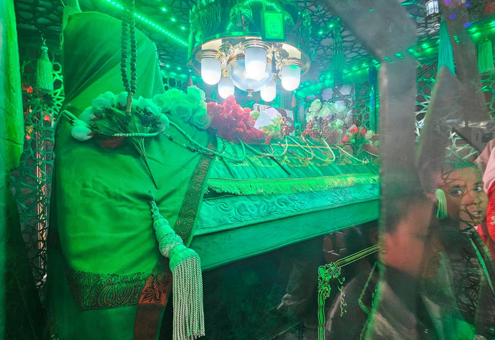 تزيين الضريح والمقام خلال زيارات المواطنين بالبلالين والورود