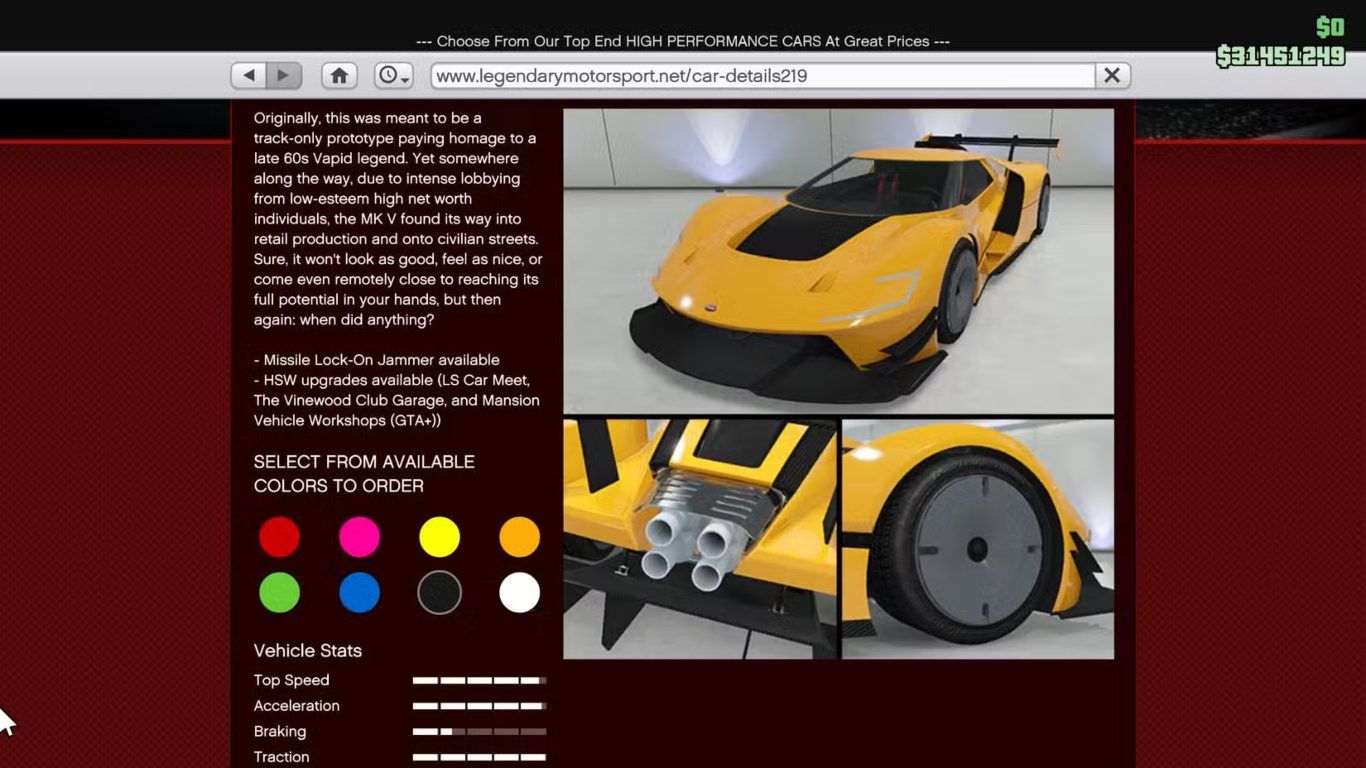 في السباقات التي تسمح بتفعيل HSW Upgrades تصبح Vapid FMJ Mk V أداة حسم حقيقية حيث تمنح اللاعب انطلاقة قوية منذ البداية وتسمح بالحفاظ على الصدارة دون الحاجة إلى مجازفات خطيرة.