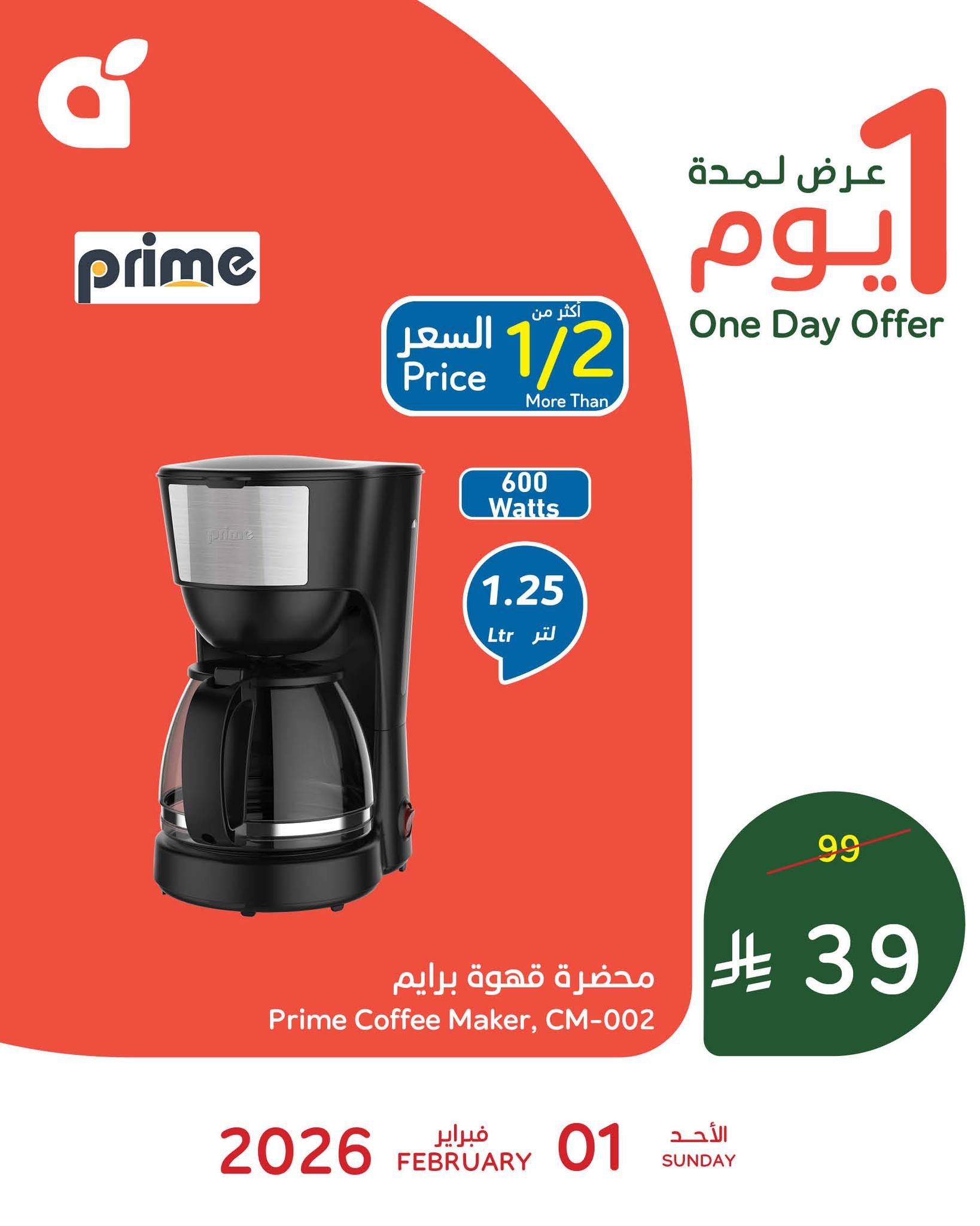 عروض بنده السعودية الاحد 1-2-2026 الموافق 13 شعبان 1447هـ و بتحتوي علي تشكيلة من افضل الاجهزة المنزلية و الخاصة بالمطبخ استعداد لشهر رمضان الكريم و بتقدم محضرة قهوة برايم و عجانة برايم و بصفقة حصرية متاحة اليوم فقط و باكثر من نصف السعر ابقوا معنا ليصلكم كل جديد عن عروض السعودية .