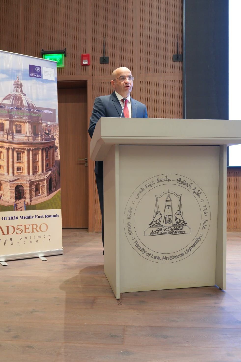 وأكد أن استضافة المسابقة بكلية الحقوق ومركز الابتكار بجامعة عين شمس (iHub) تعكس رؤية الجامعة في دمج التكنولوجيا والابتكار بالتعليم القانوني، مشيراً إلى أن الشراكة مع أكسفورد الممتدة منذ عام 2015، وانضمام جامعة كولومبيا كشريك أكاديمي للعام الثاني، يعكسان اهمية الحدث دولياً.