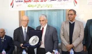 وفى نهاية الندوة فتح حوار مع الحضور وأجاب على كل الأسئلة وأهدى عميد كلية الطب اللواء وليد السيسي درع الجامعة